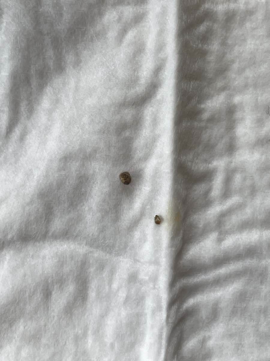 Plus dnesni update. Dnes jsem Hachimu nasla v rane dva male kaminky.. rana zacala produkovat takovy zvlastni slem ve velkem mnozstvi, na ktery se porad lepi bordel, ktery z nej nejde oplachnout ani proudem fuziologickeho roztoku. Musela jsem to vzit pinzetou, protoze ani sterilnim ctvercem tse to nechtelo pustit.