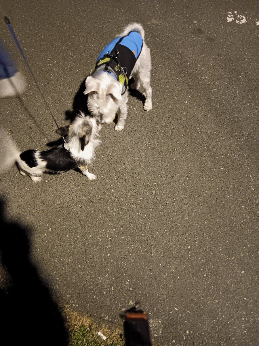 Náš bělouš se včera pozdě večer na procházce zamiloval až po uši a chtěl si s fenečkou hned i děti dělat, tak říkám nene, pojď ke mně, uvědom si, že jsi kastrovaný 😄 🤦♀️