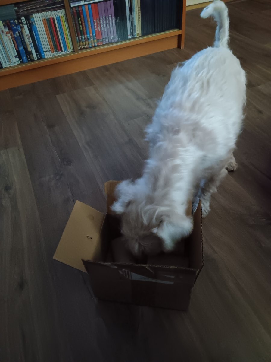 Tak u nás, jak začal půlnoční “kulomet”, tak Běloušek koukal po nás a hned zase ven a začal trochu pobíhat, bez další reakce. Radši jsem dala do placu připravenou krabičku s ruličkama a malými kousky sušeného masíčka. Pochutnal si, unavil se a leží v pelechu 👍