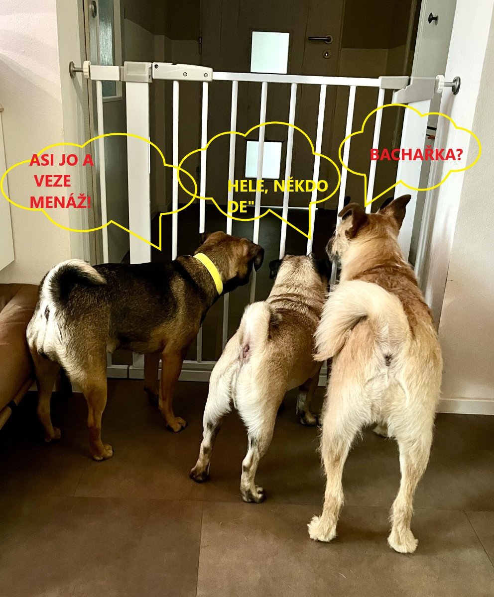 Jsem vymyslela, že bychomsme z toho udělaly celosvětovou záležitost, že bychom to trio s názvem Los Kretýnos mohly propagačně využít - něco jako život po životě - tedy život po životě v útulku. Takovej nápad mi přišel. Před chvílí. 😀