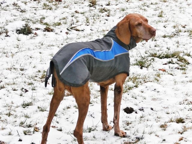 ten asi nejspíš mám ve velikosti ik-ik-el-moťtlutí 😀 , sem ho dostala za pomoc kdysi dávno, nejdřív chtěla poslat dál, že co já s tak velkým oblečkem, pak ale nějak zvostal doma a přišla Taliprdí dáma, který dokonale padne. Ten je fakt fajn. zatím ho využila jen, když byla v zimě jednou nemocná s psincákem, ale na stáří jak když najdu. Te´d se v pohodě v mínus devítí válí po sněhu s balonem, tak to by asi bylo zbytečný. Já nechtěla dávat ani Rumíčkovi, aby nezchoulostivěl, protože se zatím nejeví, že by mu byla zima, ale přeci jen 11,5, šelest na srdci, tak jsem do toho nakonec šla a protože jsem objednávala něco v lidlu, vzala jsem tam i jeden fleesovej nákrčník rovnou, kdyby bylo potřeba.
