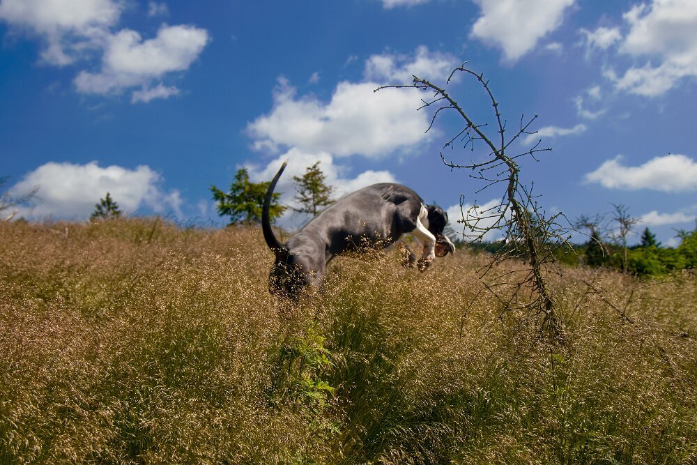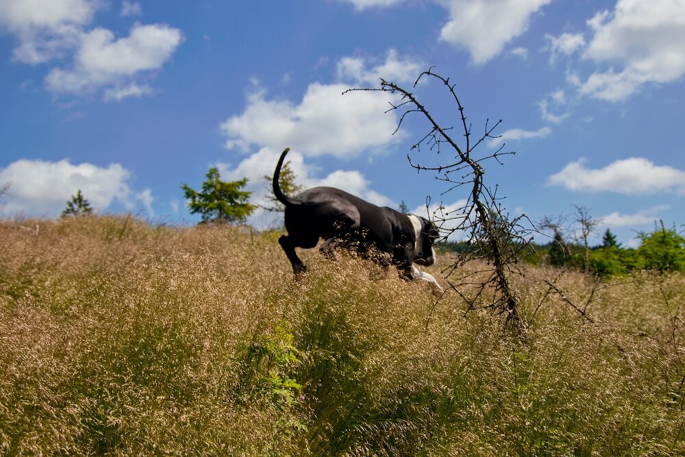 já bych mu i sobě udělala prázdniny - dlouhé procházky v přírodě, veselé hraní, žádný dril - jen občas kratičké procvičení toho, co ho baví. Žádné tréninky, tábory, hromadné procházky… aby měl čas “dělat psa” - čenichat, pobíhat, volit si tempo… Však on si řekne, když bude chtít něco dělat a kdy se bude chtít “poflakovat”.