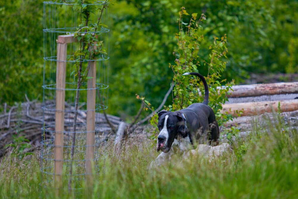 a v lesích za humny nám vysázeli lesáci novou alej - a překvapivě to nejsou ani jeřabiny, ani javory (jako jinde na horách), ale jsou to jabloně, hrušně, třešně, švestky… prostě budeme mít ovocné stromy podél cest. U Yody je to sedmá fotka - v ohrádkách jsou nové ovocné stromky