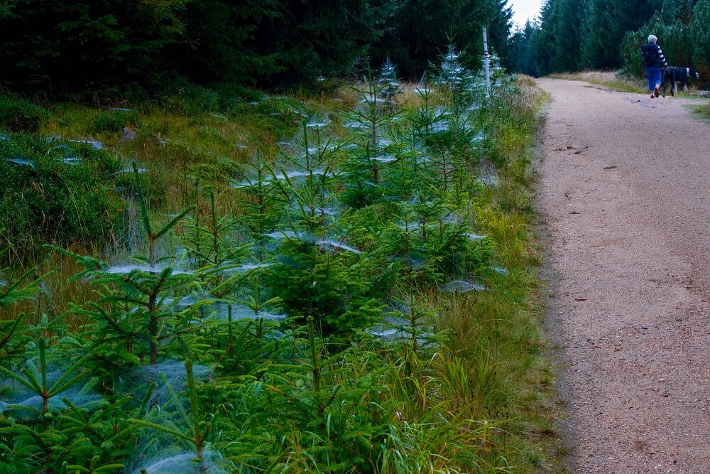 Správné Jizerky čvachtají… a já nerada nosím kotníkové boty, takže většinou dříve nebo později mi nateče voda do bot vrchem. Včera to ani jinak nešlo - a to jsme všude šli po značených cestách. Když je dost vody, vypadají některé cesty jako koryto potoka. Alespoň mohl Yoda pít přímo na značené cestě průzračnou tekoucí vodu…