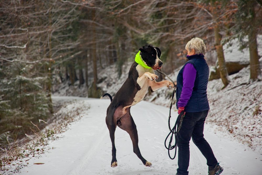 Arona s námi bruslila - pohybovala se po ledu zcela suverénně. Ostatní dogy led pod tlapkama nerady - a tak to řešíme buď střídáním, nebo delší procházkou a následným odložením psiska do auta (za mrazů třeba i s péřovou dečkou na přikrytí) a nebo taky pro nás tak výjimečnou akcí bezpsí…