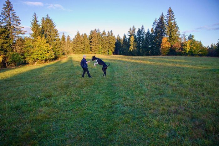 Thielli:Konečně chlad a vláha. Krásná vycházka, běh louží, radostné hrátky.