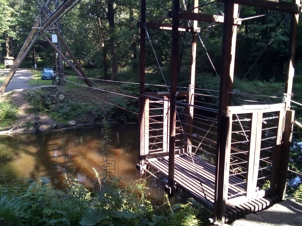Byla jsem se včera povozit….je to taková úžasná záležitost, děti a mě to děsně baví. ( V roce 2010 povodeň strhla turistickou lávku přes Nisu, místo ní později vymysleli a postavili transborder - tak se to jmenuje a jezdí pořád). Pohání si to každý sám, popotahováním za lano.