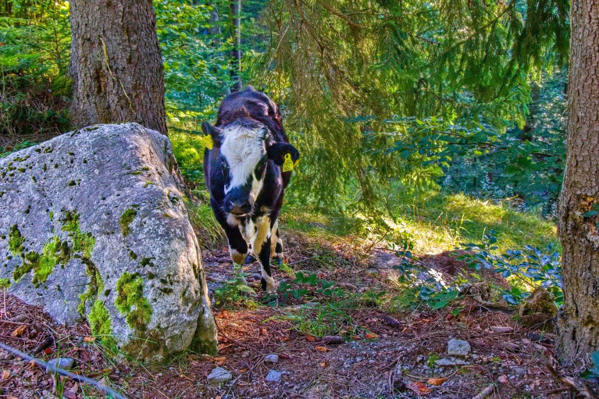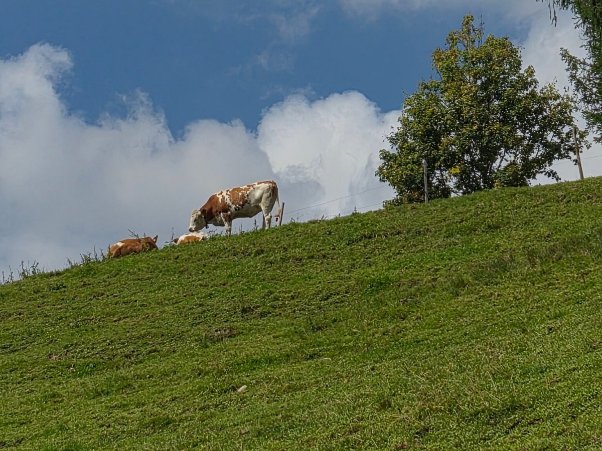 Pět dní jsem se pohybovala velmi blízko stádu krav. No stádu - ono to bylo více skupin, které se pohybovaly po obřím prostoru (tak kilometr na kilometr - a navíc nahoře ohradník místy chyběl, takže kravky mohly až k suťový polím). Pozorovali jsme je průběžně… hlavně naše babča, která ve dvaadevadesáti letech už po kopcích neběhala… ale právě často pozorovala z terasy kravky za ohradníkem.