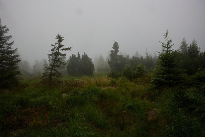 to jsme jednou šli Jizerkama cestou necestou. A najednou na lesní cestě hodně špatně sjízdné luxusní bavorák s nízkým podvozkem, v něm vyděšený mládežník a krásná slečna… Spali na Mariánkách v půjčené chatě a kdosi jim řekl, že se dá projet i na druhou stranu hor a že závory bývají nezamčené, zámky jen navlečené (a fakt často jo - občas na ně kouknu, když už jsem se to tehdy dozvěděla 🙃 ). Ptali se na cestu a měli výraz asi jak Jeníček s Mařenkou, když viděli Ježibabu… Přesvědčili jsme je, ať to na pasece otočí, že dál bude už jen hůř… Škoda, že nemáme fotku - ten drahý sporťák v bahně a kamení cest…