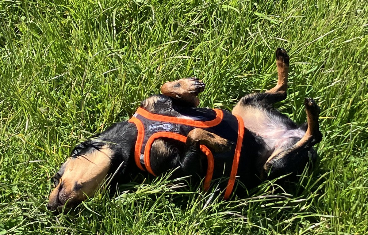 Potěšilo mě to, my ale Kiliánovi a Evě nesaháme po kotníky. K přípravě na dlouhé výlety klidným tempem stačí chodit kratší výlety. Připravit čtyřnohého parťáka na závody poslušnosti, obranu, hledání atd. je mnohem těžší. Možná ale jednu dovednost lepší máme. Plazení 😁 Sice není úplně žádoucí, aby se pes při zkoušce místo chůze u nohy plazil, ale jde to Bonnie výborně 😂