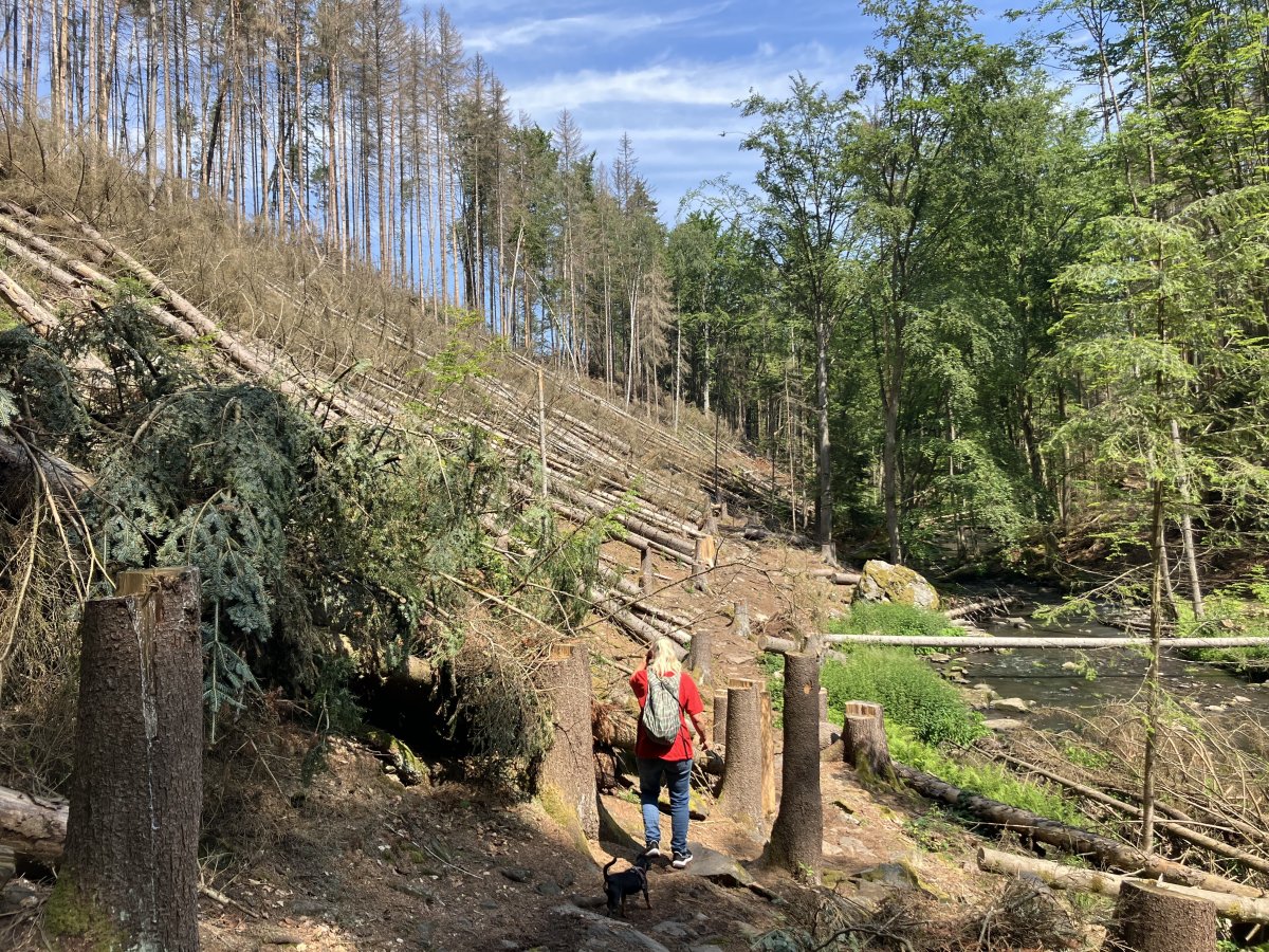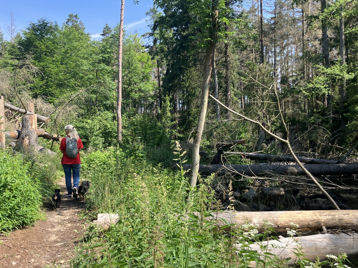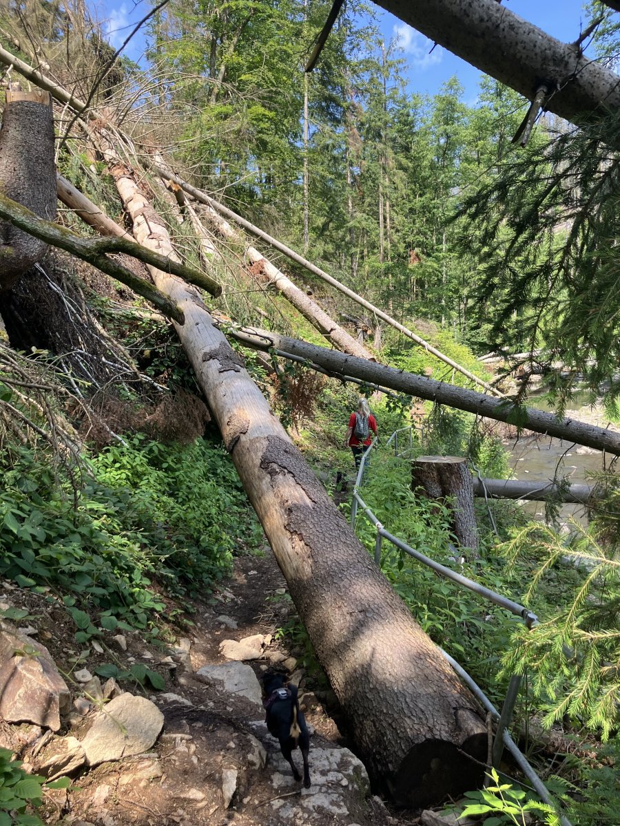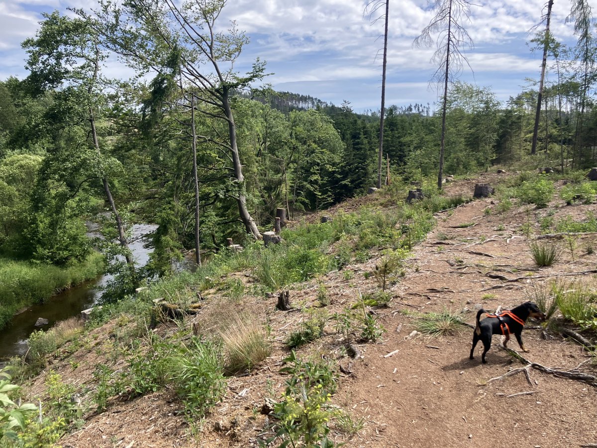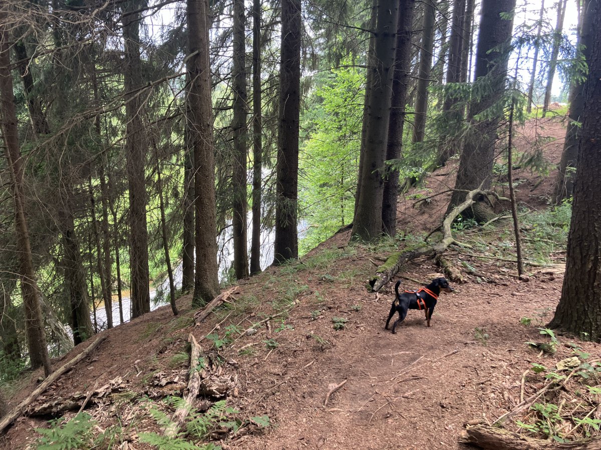 Dopoledne po asi měsíci cvičák. A pak rovnou výlet směr údolí Doubravy u Chotěboře. Další místo v Železných horách, kde naplno řádil kůrovec. Takhle to u nás vypadá na spoustě míst.