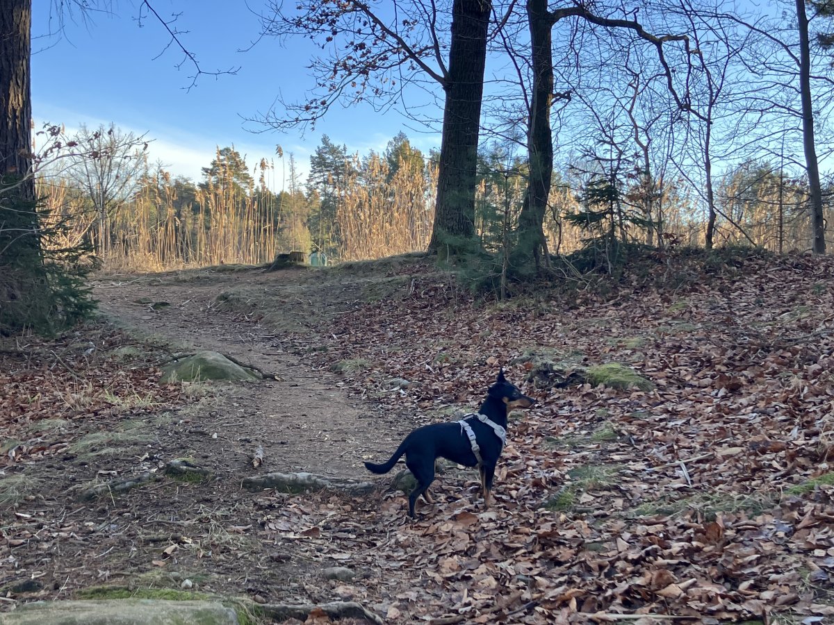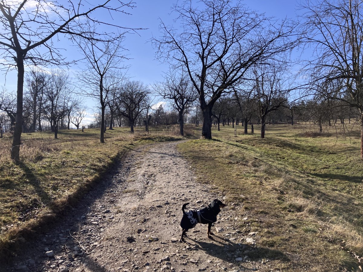 Potkaly jsme krásnou fenu německého pinče. To je teprve druhý němec, se kterým jsme se setkaly na procházce. To jsou tak krásní psi. Stejně jako trpajzlíci, ale u nich je ta elegance znatelná jen z větší vzdálenosti nebo na fotce. Při pohledu zblízka a shora nejsou totiž trpaslíkům vidět nožičky 😎