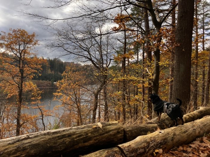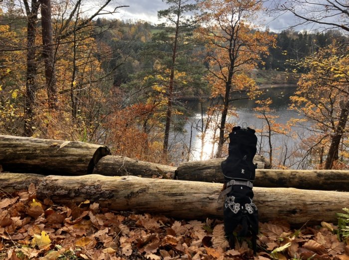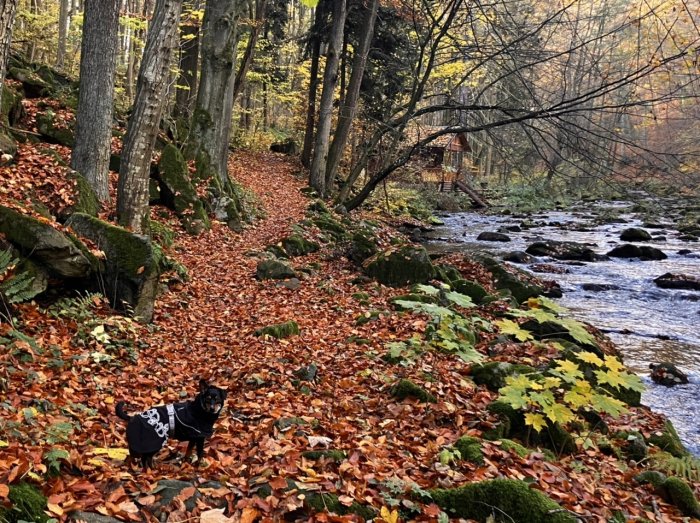 Před polednem jsme šly na procházku do údolí Chrudimky (rezervace Krkanka), přes hráz Křižanovické přehrady, podél přehrady a domů. Lážo plážo tempem 4 hodinky. Dokud to jde. Příští týden má pršet. A pak to bude venčení na provázku a asi nikam daleko, pokud nebudu chtít poskytovat ubytování roztouženým psím klukům.