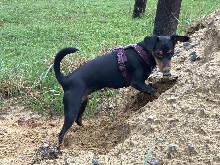 Trpajzlík má v popisu plemene, že sklon k hrabání má malý. Nevím, koho ten popis napadl. U plemene, které bylo určené pro lov myší, krys a potkanů na statcích. Koriguju, kde může hrabat.