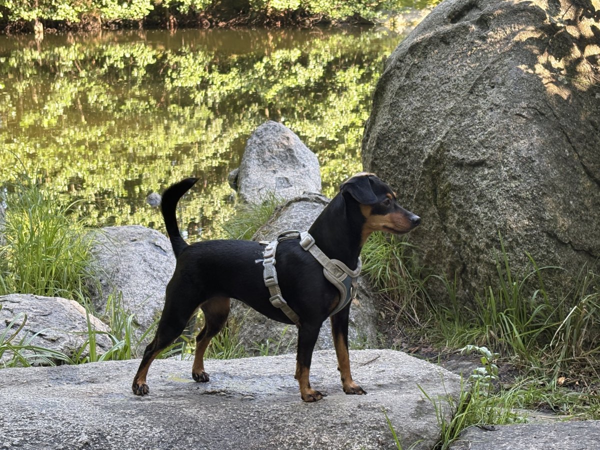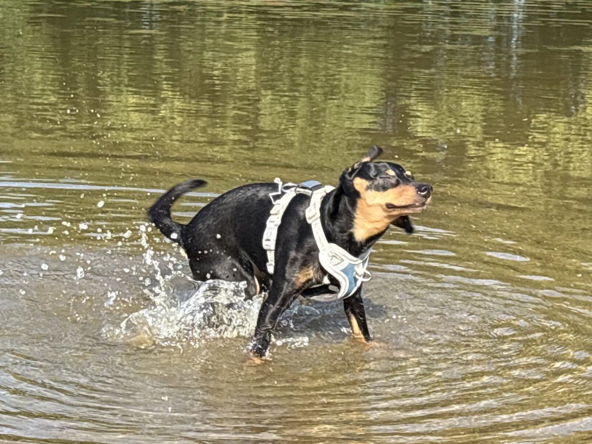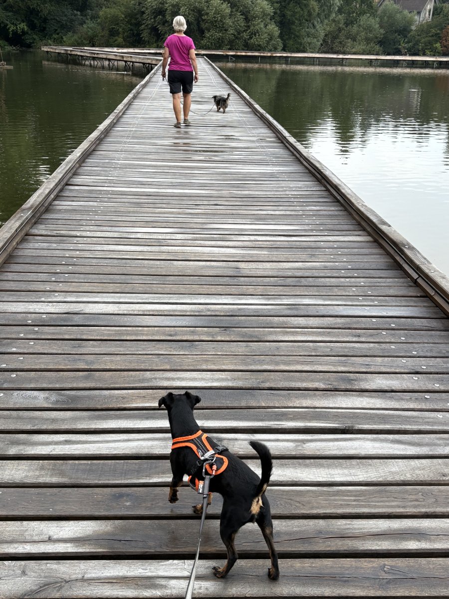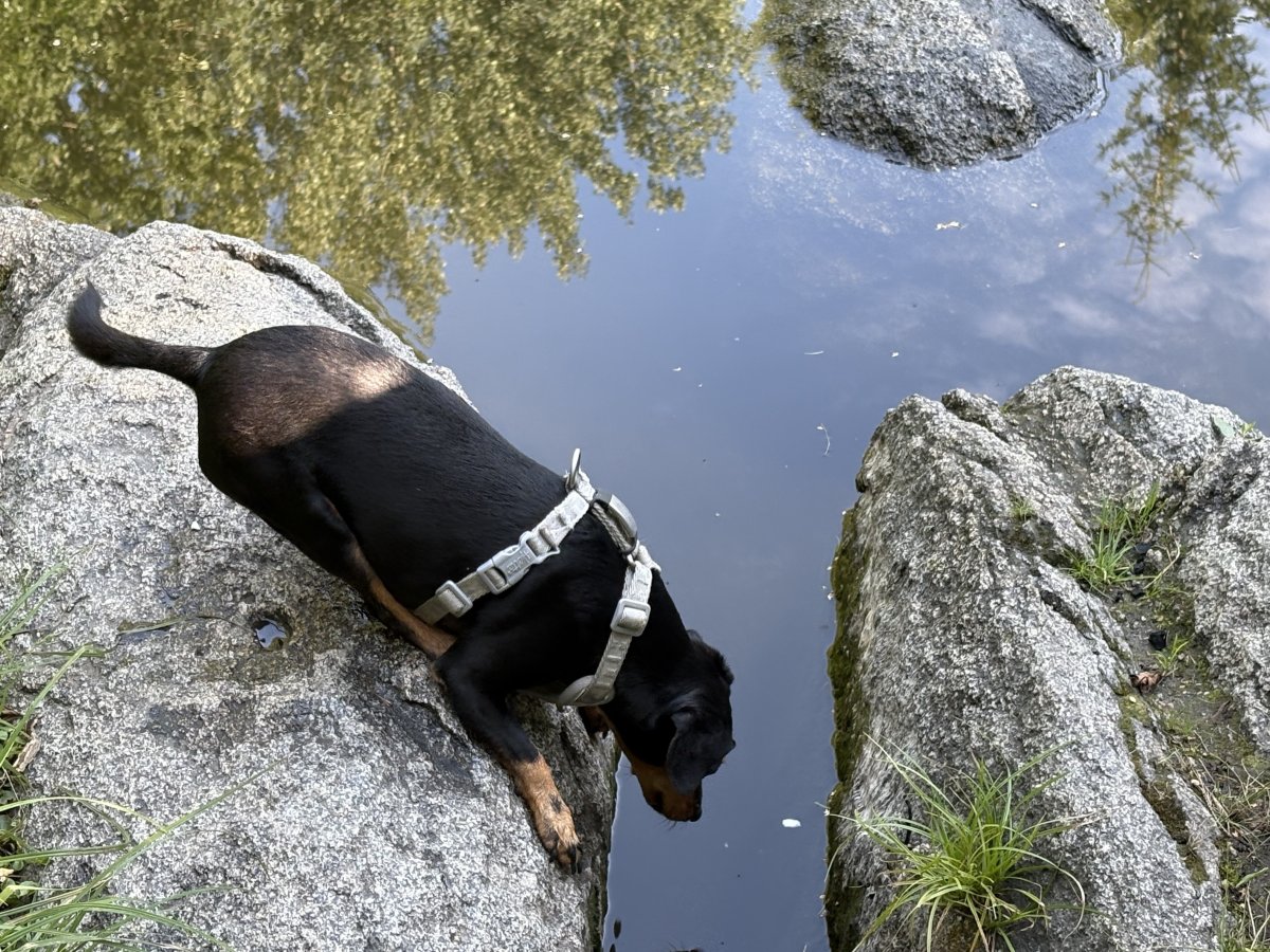Dneska jsme vymetly dva potoky, jeden rybník a jeden malý lom. V lomu spadl pamlsek do vody mezi balvany. Když Bonnie předváděla akrobatické pokusy o vyjmutí, neodolala jsem a pustila kameru. Nechala jsem ji chvilku trápit, než jsem pamlsek vylovila, jsem mrcha 😂