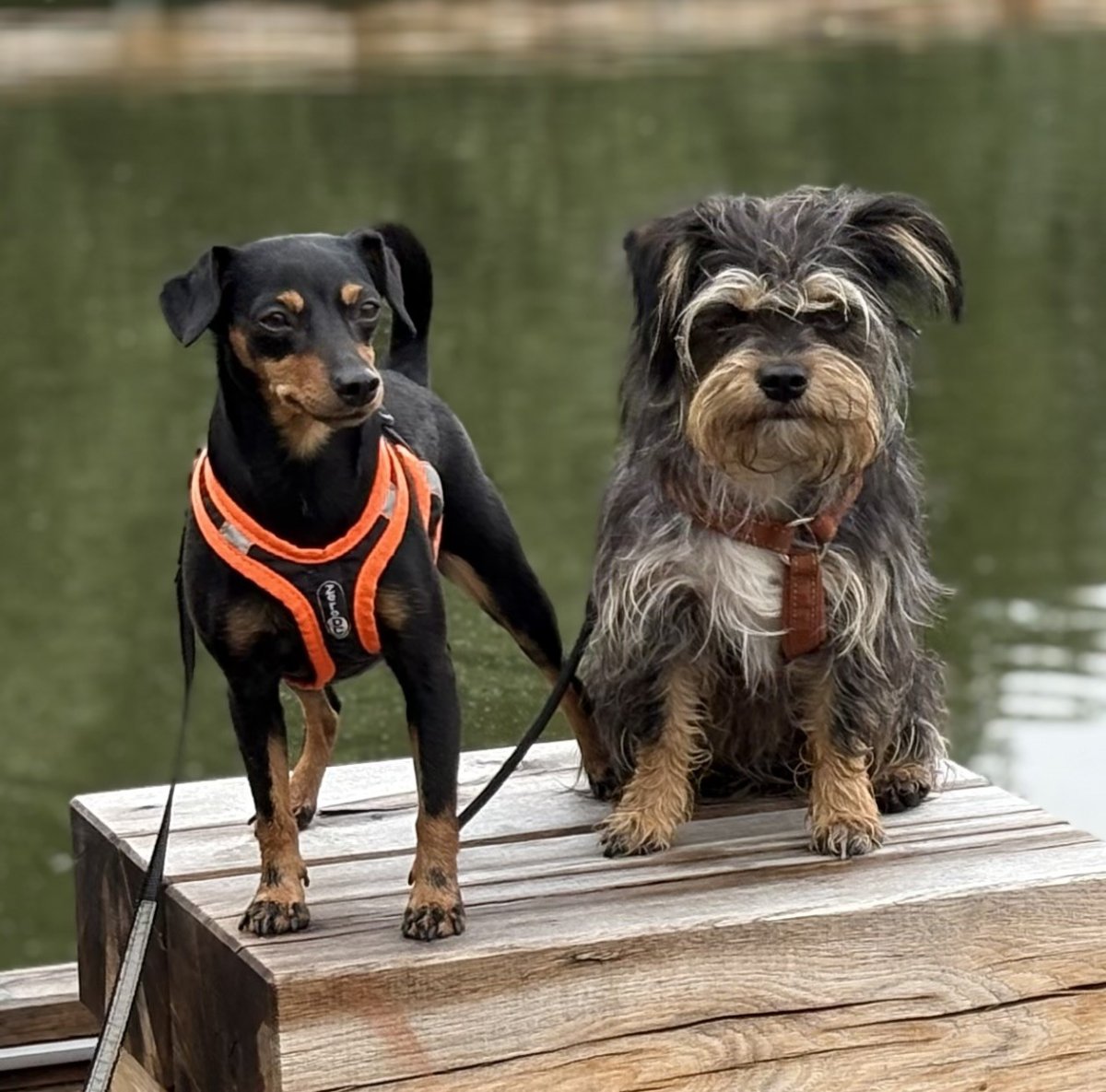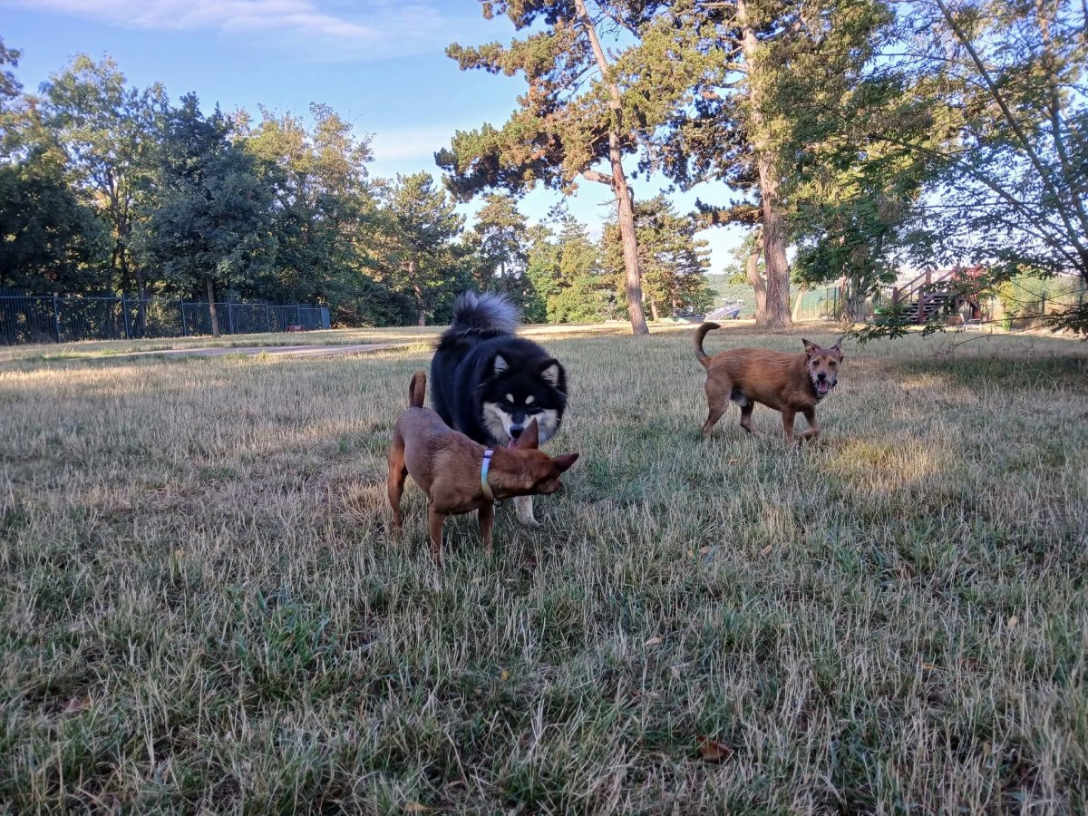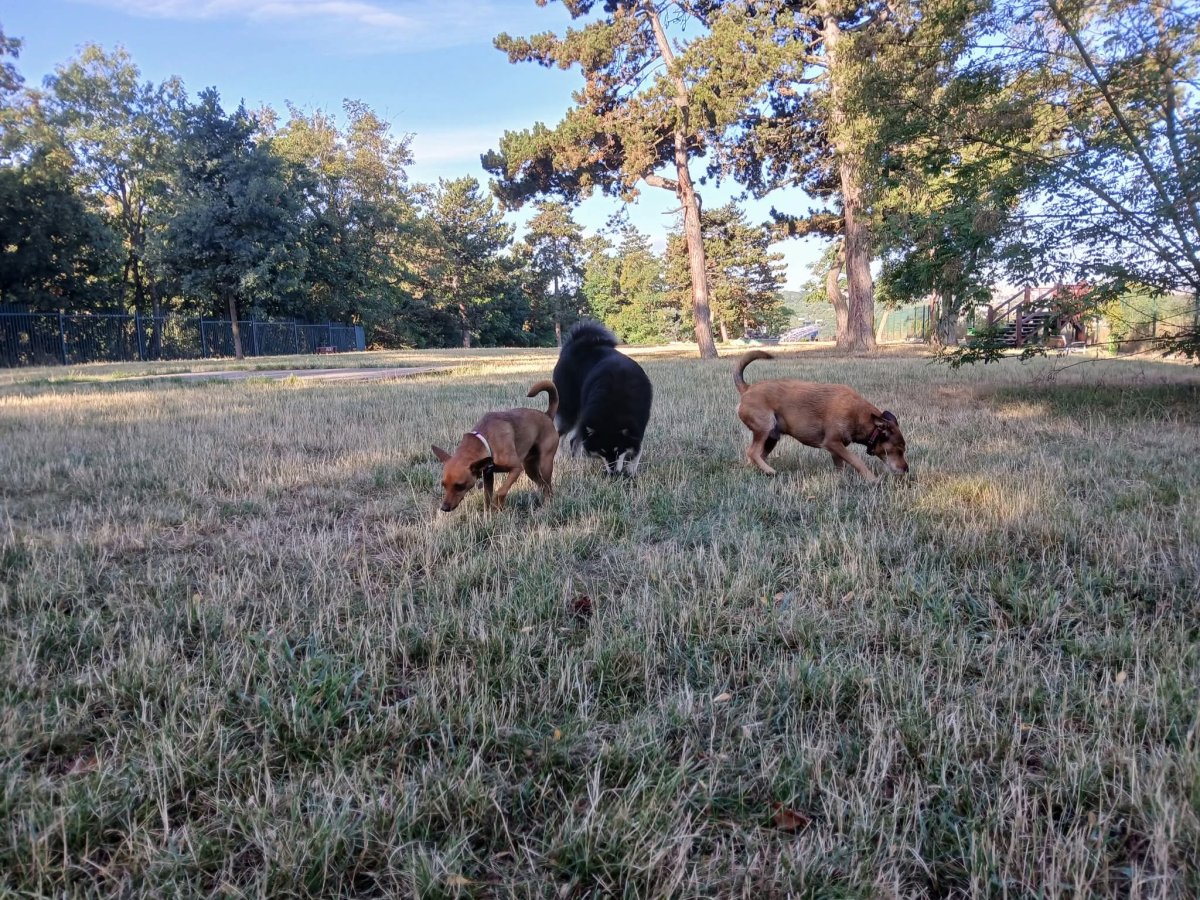 šavlozubka:Dneska se ranní vycházka mimořádně vydařila. Na vyhlídce jsme potkali ke hře svolné kámoše. To se nám moc často nepoštěstí.