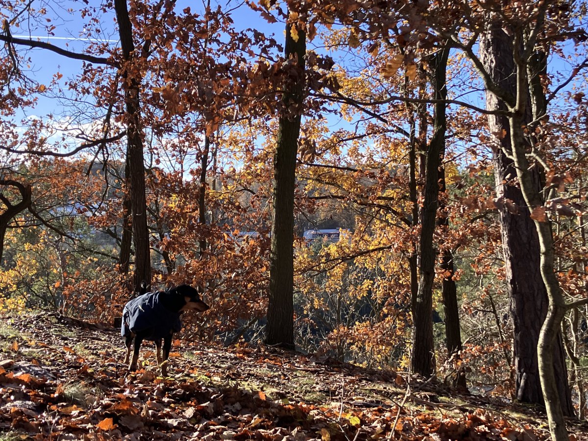 Nepohybuju o tom, že pinčová zvládne 100 km na treku lépe než já. Je pro ni přirozený klus, stejně jako pro většinu psů. Při mé chůzi jde na vodítku svižným klusem, to tempo jí vyhovuje. Při chůzi navolno se občas zdrží, přejde do cvalu, doběhne mě. Větší pes by se na vodítku při mé “rychlosti” chůze vlekl krokem, pro akčňáka by to bylo asi nepříjemné.