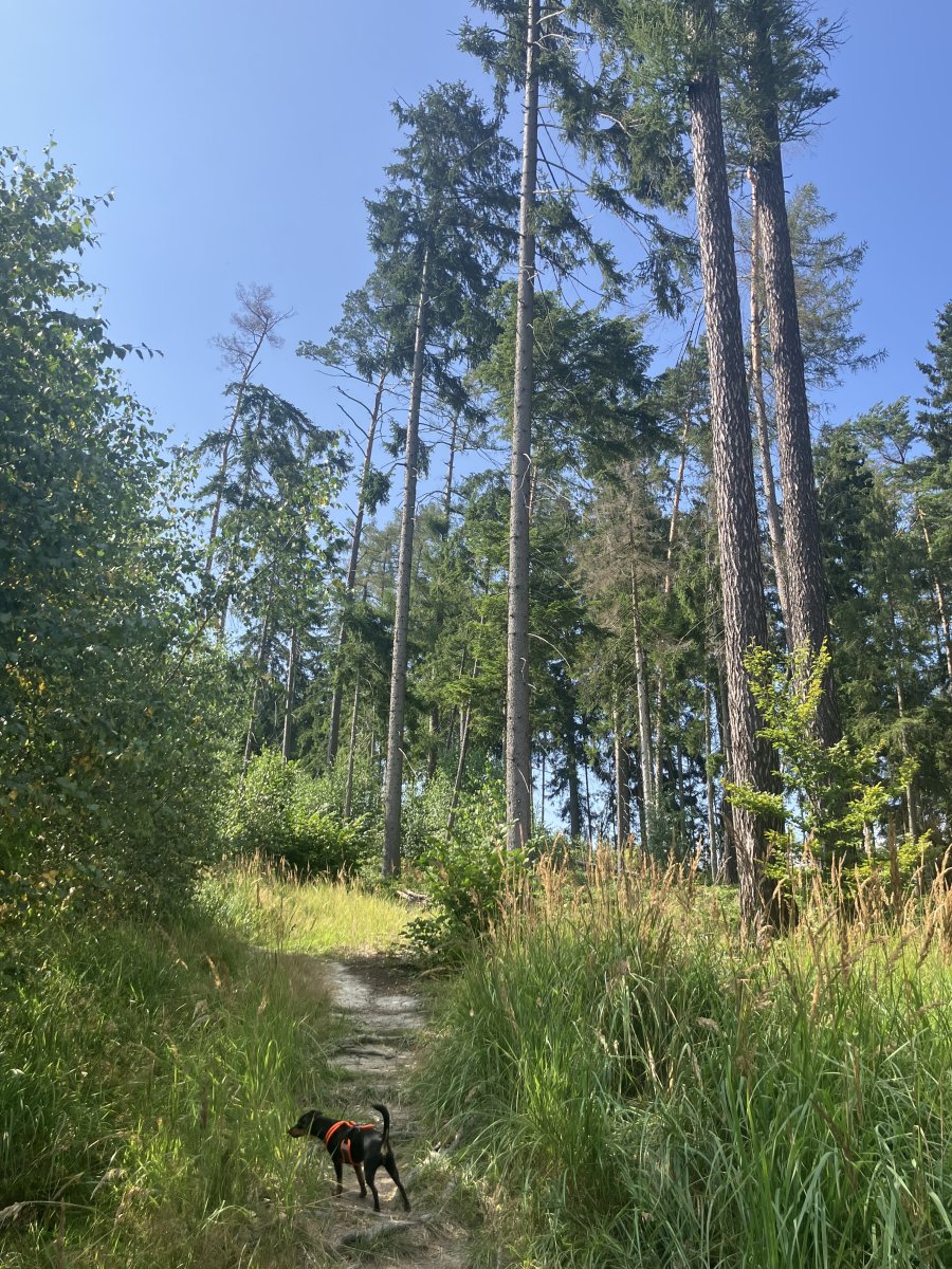 Vyšly jsme v poledne, za největšího tepla. Jsem ráda za dvě hodinky venku. Už jsem to tu psala, loni by to ještě nepřicházelo v úvahu. Chvíli Bonnie klepala kosu, protože jsem v jedné vesnici zpomalila a byla zrovna na vodítku, ale rozhýbaly jsme to. A i ke konci procházky vypadala spokojená.
