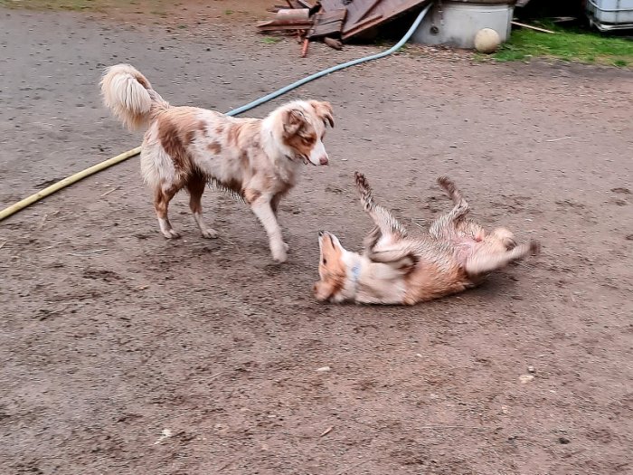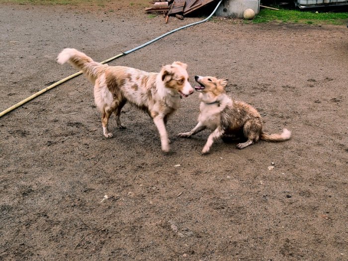 U nás celý den pršelo. Na rozdíl od Ori, která se na venčení v dešti vždycky tvářila jestli jsem se nezbláznila - lozit ven v takovém počasí, je Connie déšť jedno. Hlavně když si může najít klacíček a běhat. V půlce odpoledne pršet přestalo, tak jsme jely ke koním, kde si skvěle pohrála s domácí fenkou. Akorát pak doma putovala rovnou pod sprchu 🙄.