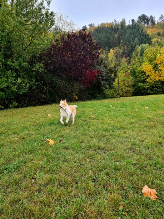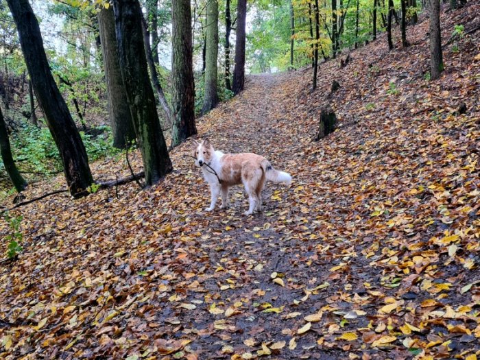 Pár fotek - venčení ráno v pravé podzimní mlze a souboj s větvičkou 😂.