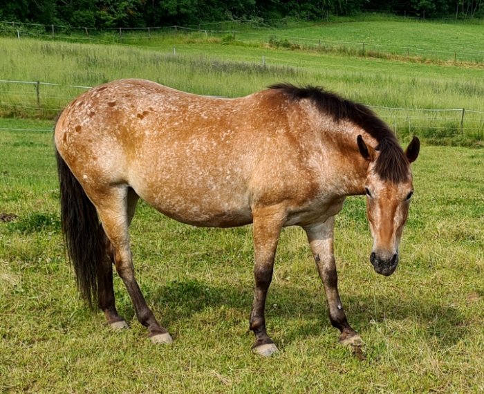Moje poloviční appa je speciální případ - v létě je prokvetlá, v zimě tmavá. Stejně prosvětlená byla na léto už jako roček, úplně bílá nebude nikdy. V zimě je z ní hnědka s pár bílými flíčky na zadku.