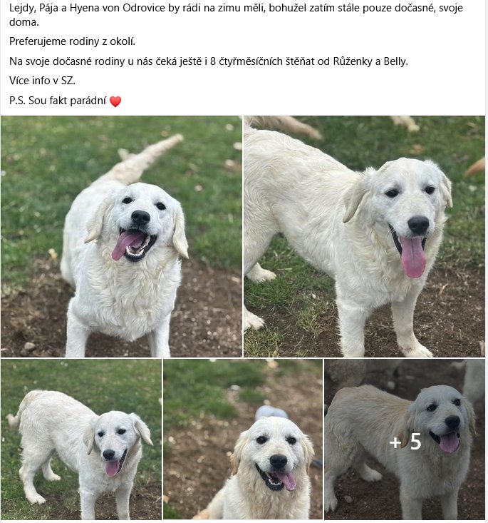 Sarah01:Stále jsou k umístění do dočasky retrívři z Odrovic, kam to prosím dát k většímu dosahu? Jde i o čtyřměsíční štěňátka.