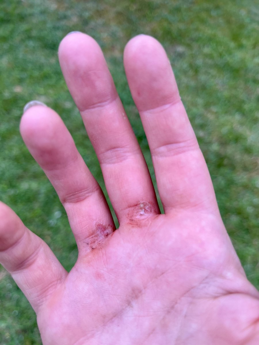 efe:Tohle byly otěže, při pádu… Doteď nemám cit v posledním článku prsteníčku. Asi nějaký oteklý nerv bo co…
