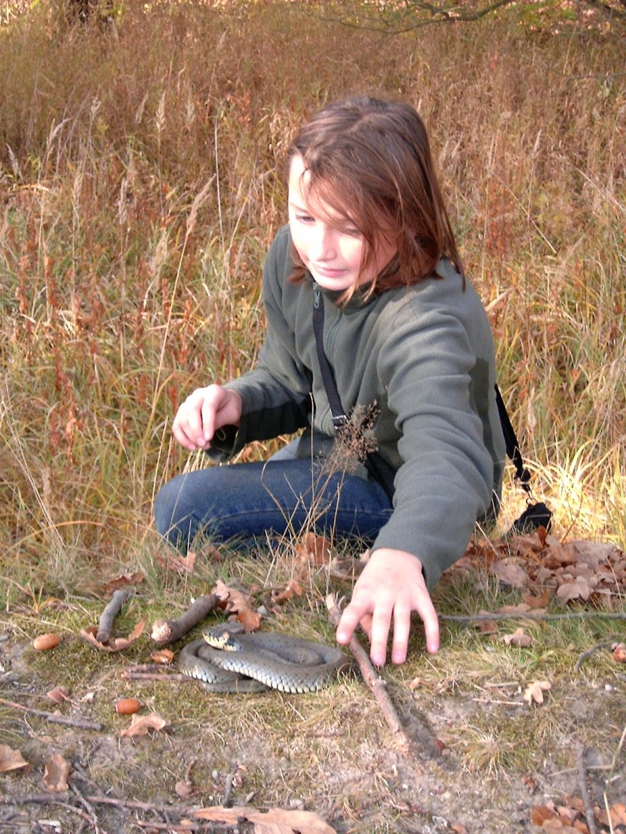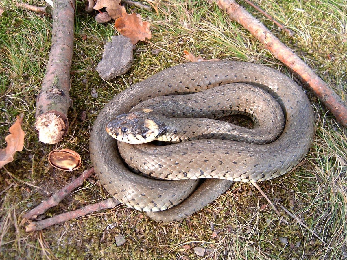 Na rybnících máme pěkné exempláře užovek obojkových, velkých, jako vycházková hůl…nebožka erdelka jednu užovku i neohroženě ulovila…
