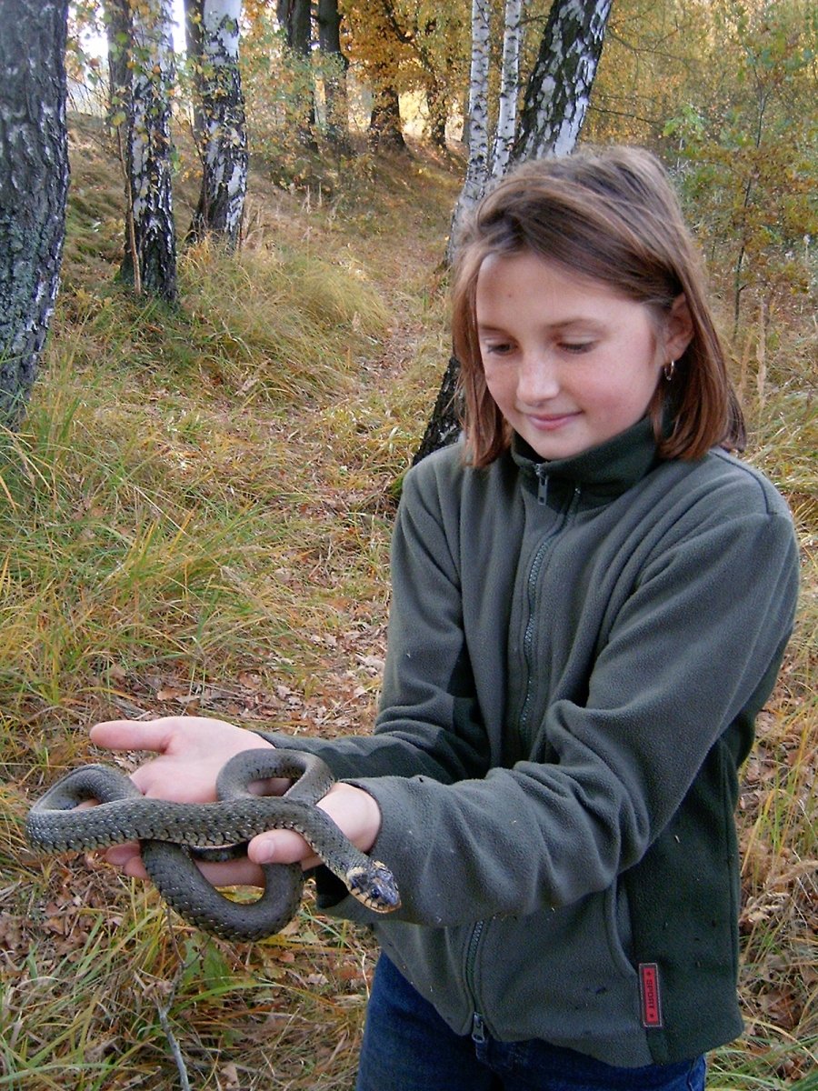 OT- zážitky s hadama? :vidím v lese řetěz z kola, si říkám co tu dělá řetěz z kola? až se ten řetěz uprostřed zvednul a zesyčel mě…se zmijí se potkávám na Šumavě běžně, živýma i placatýma…i s tou černou. Užovku jsem nesla ukázat dětem, vložila jsem si jí do košíku s houbama a ona mi za odměnu ty houby zasmradila…