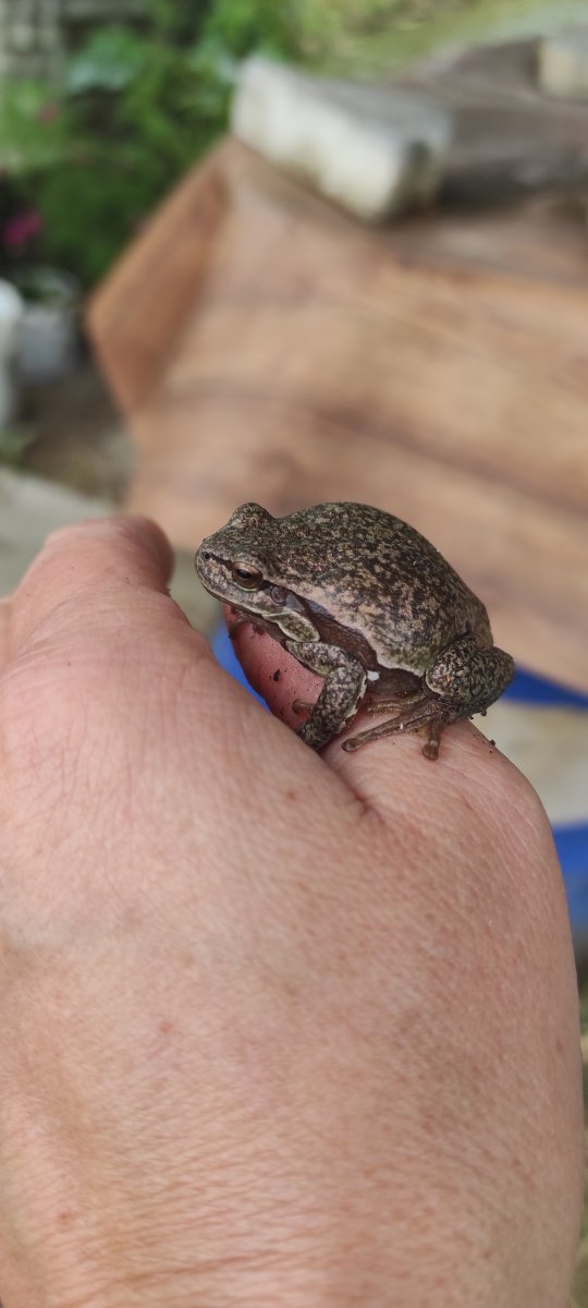 Někde jsem tu viděla sháňku po rosničkách.ale už nevím kde…tak to odložím tady.taková jedna zrovna nezeleně zbarvená.ale rosňa to je. Pořád na večer vržou..tahle seděla na sudu s obilím pod linem(zakryto proti dešti)