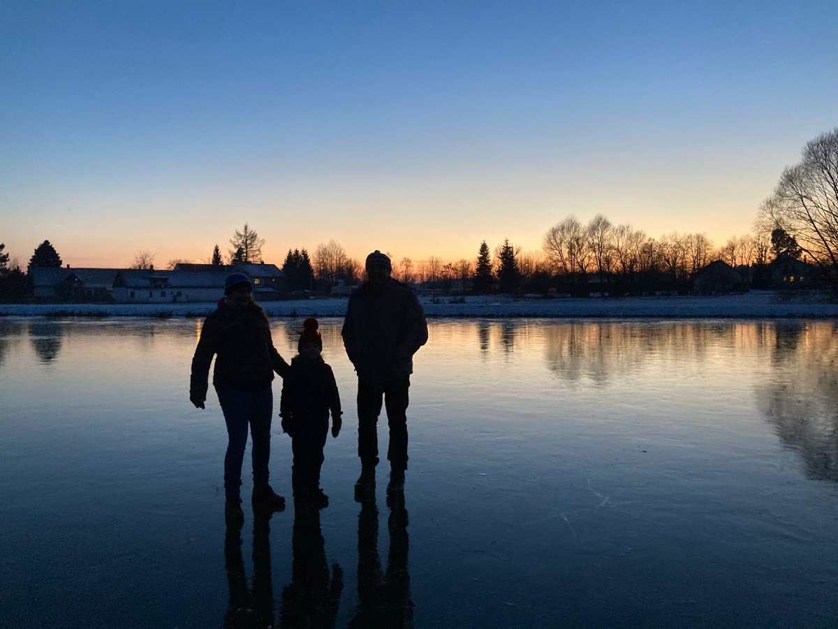 Babička-já, posera, obvzlášť, když se děda přiblíží a led puká😲, vnučka, a děda…dcera fotí a pes je raději na břehu..