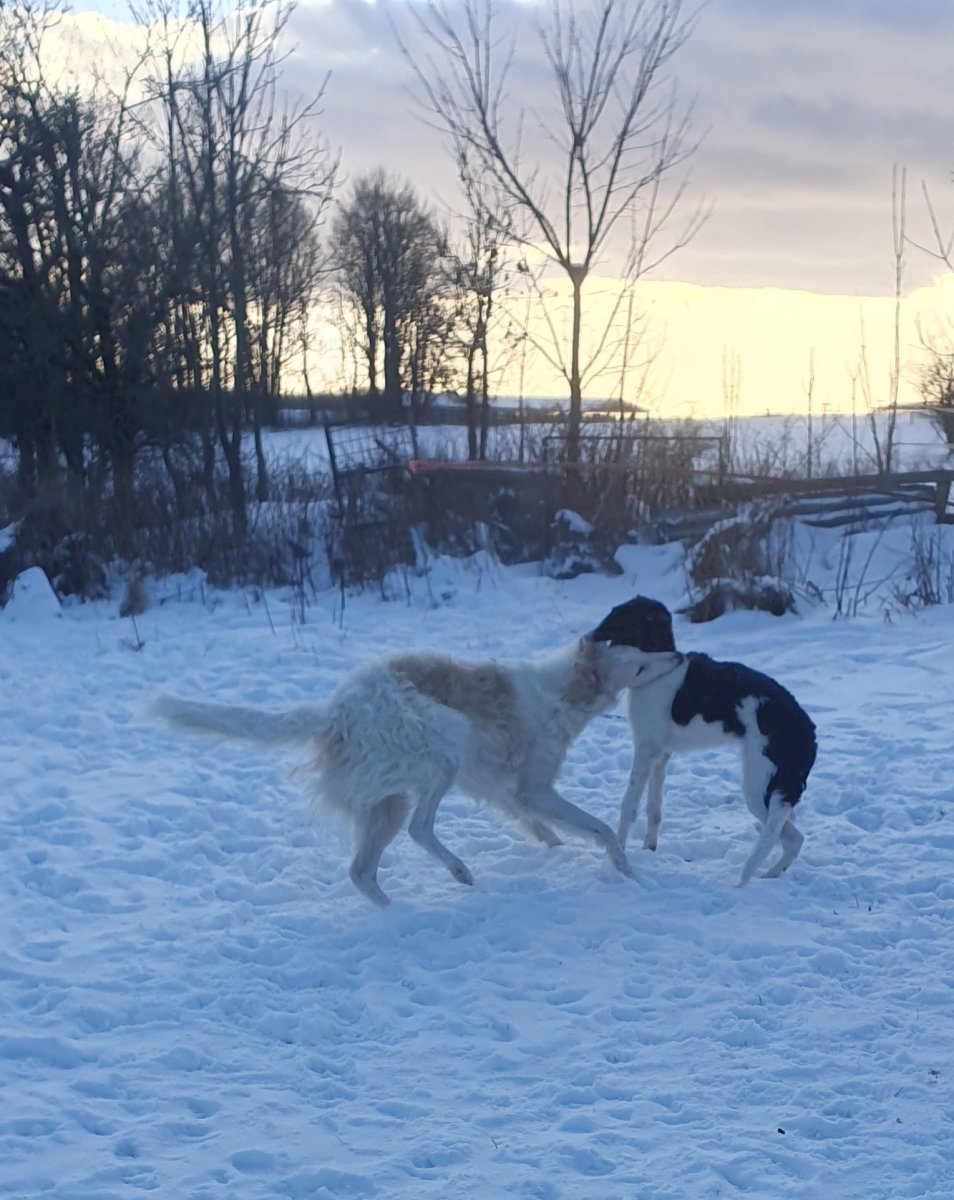 Vysavač to uklidil, ještě teď ho z toho břicho bolí 🙈. Nejhorší bylo, že jsem se nemohla rozčilovat, smát, plakat…., kluci by se buď chtěli radovat se mnou nebo utěšovat, případně by se klidili z dosahu a vše bylo špatně. Takže jediný povel: zůstat, neheeejjjbbbaaat se! Malej Arčí, všechny kočky a tři barzojí ocasy ,co sebou mávaly jak na prvního máje neposlechli 🤣, tak vznikla sněhová bouře. Já popadla vysavač, pytel na odpadky a hodina a půl brigády zajištěno. Kluci samozřejmě museli pomáhat, žejo. Odpoledne po práci další dvě hodiny a peří už se nachází ojediněle a zásadně v jiných místnostech nebo patrech🙈. Stejně jsem si za to mohla, peří a barzoj fakt nejde dohromady 😉