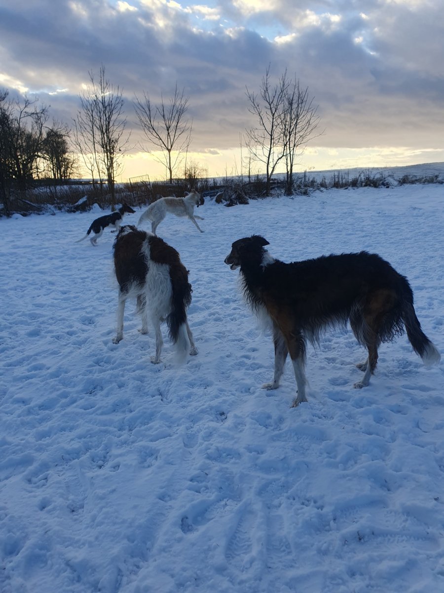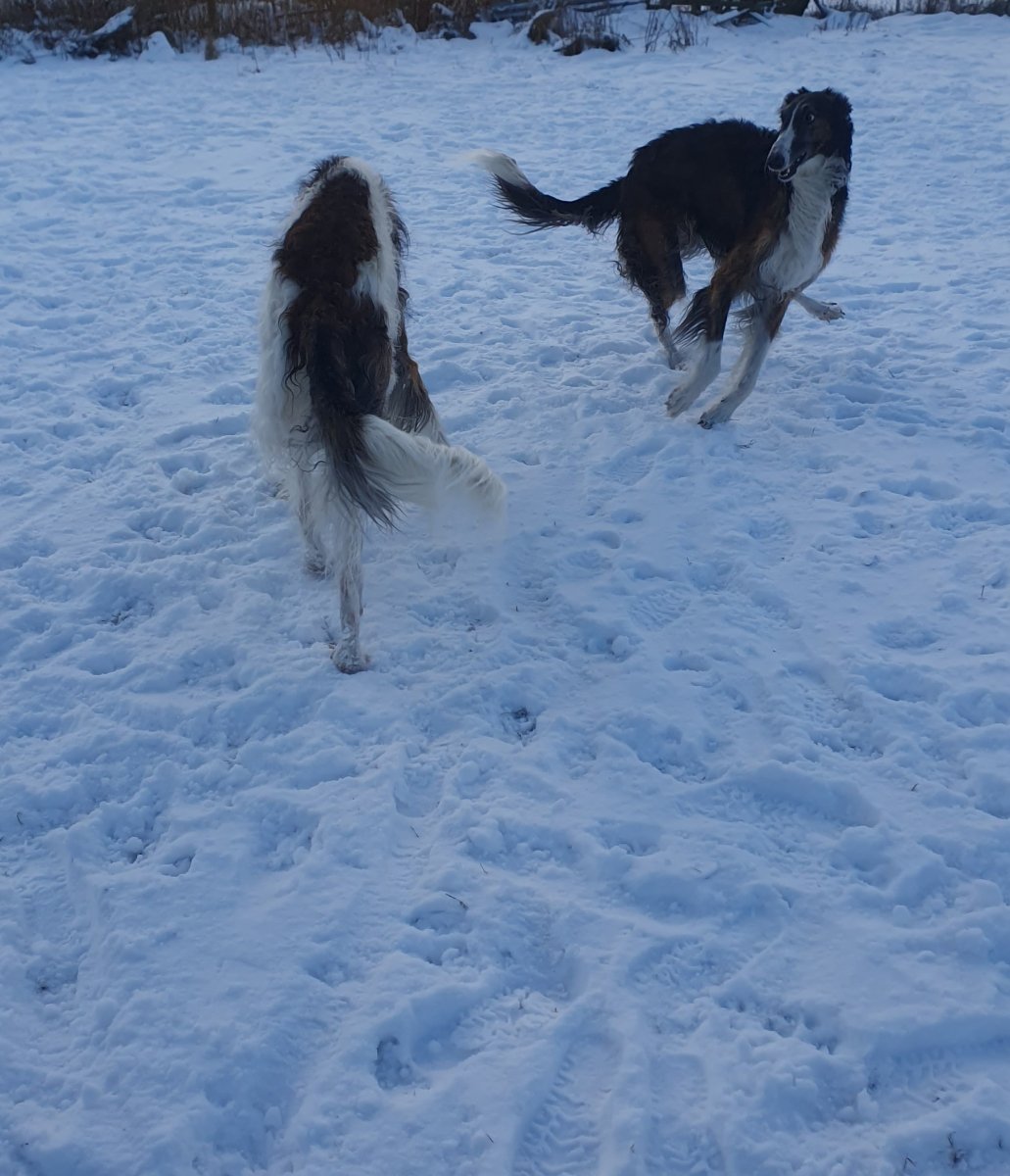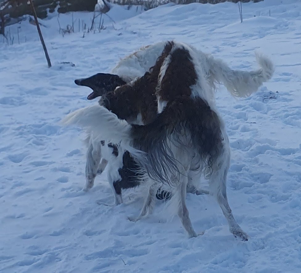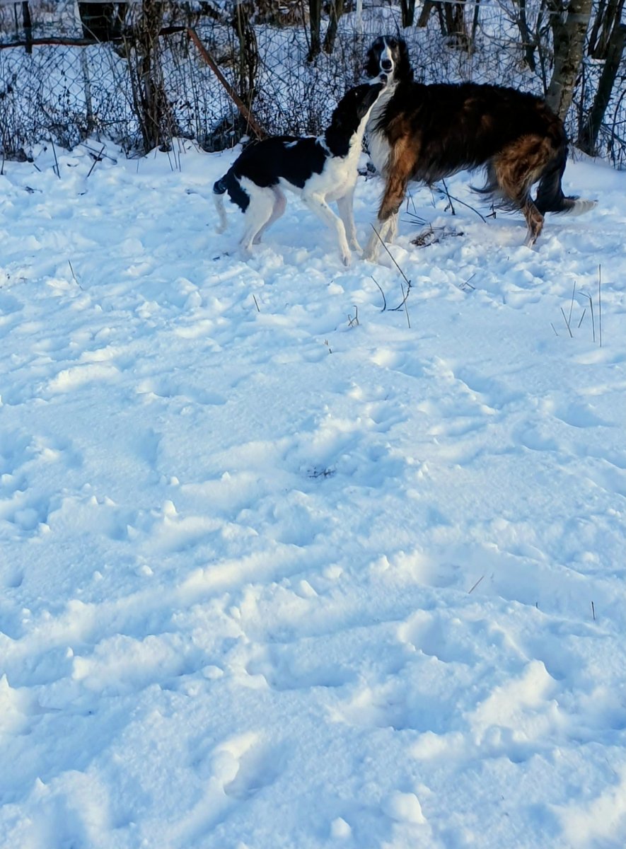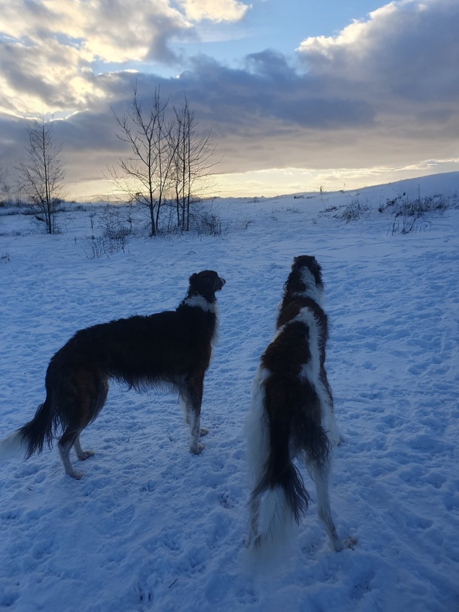 Venčíme svátečně, kluci jsou po cukroví jak kdyby byli nadopovaní🤣, ale je to hezký , jak jsou šťastní. Malej je už skoro velkej, ale společný venčení pořád hrozí ušlapáním, takže se koná jen jednou denně 😉, a náš pátý Bruno prý chce hlavně klid a něco nezdravýho dobrého, jo a hlavně netýrat focením. Co taky máme chtít kmetovi smečky. Jo a kočičáci to sledují nejraději od krbu a všichni posílají pac a pusu😊
