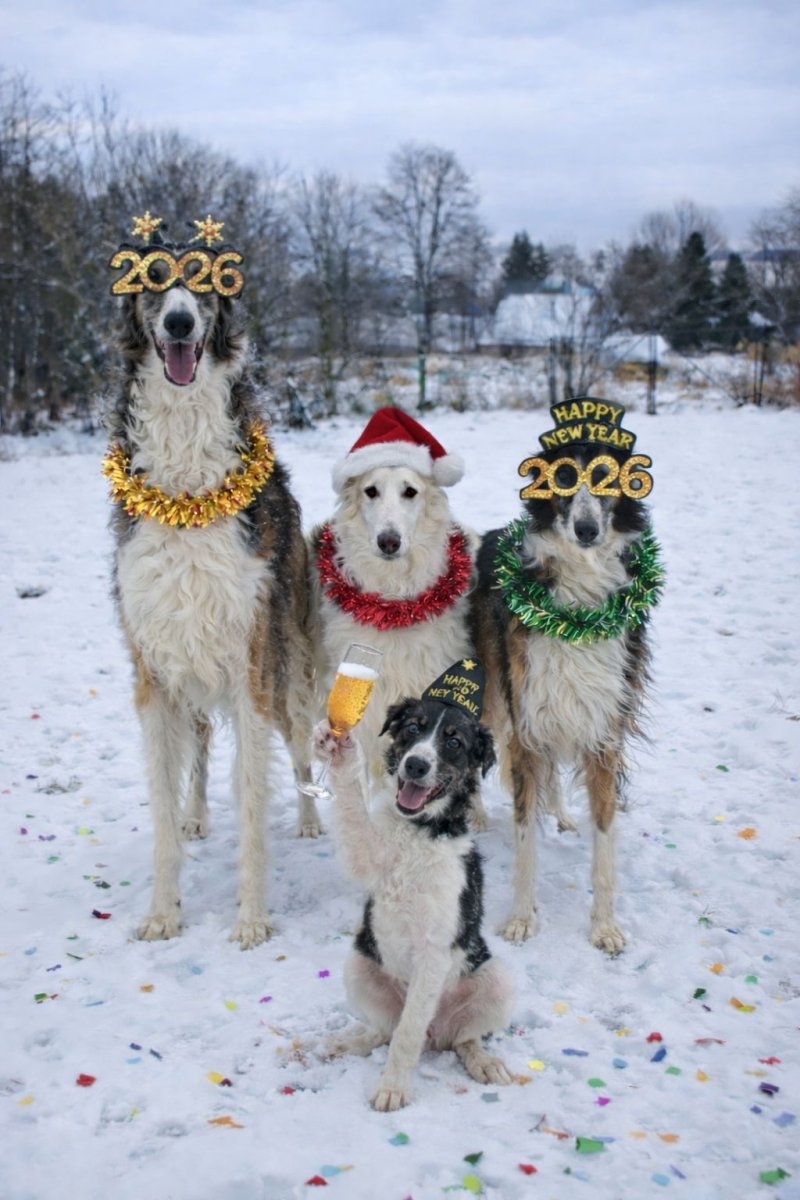 Ještě, že máme tu AI, jinak teda nevím jak donutit kluky pózovat. Jsou přešťastní a lítají, ikdyž křídla nemají🤣. Přejeme vám všem, hodně zdraví, štěstí, lásky, dobrých lidiček kolem, úspěchů a prostě dokonalou smečku. Pac a pusu na to🍾🍾🍾