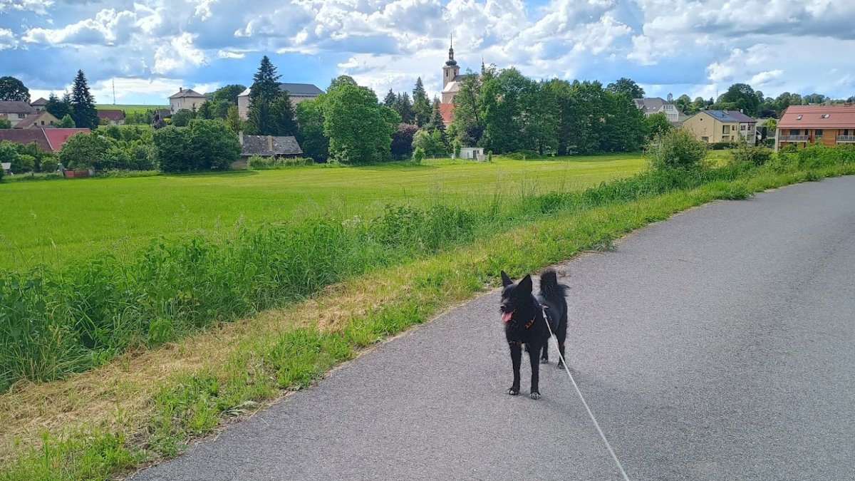 Jinak Malina mi začala na fotkách pózovat, řeknu: “Mali, uděláme fotku” a ona se postaví tak, aby byla na fotce, co nejkrásnější a postojí, dokud neřeknu, super. Jinak Malina vodu ráda nemá, ale když se jde napít do potoka, ráda si do něj stoupne, z hlubokého potoka, kam si nemůže stoupnout, se dost často ani nenapije. Dneska jde k potoku, stojí na kraji a já jí povídám, ať ho přebrodí, tak začala postupovat do vody a když jí voda smáčela hrudníček, koukla na mě, ale vždyť je to hluboký, tak jí povídám, že musí kousek dál, tak teda popošla o kus, koukla na mě, tak tady? a já ne, tady jsou houštiny, pojď blíž ke mně, tak popošla kousek, ke mně a zas koukla na mě, tady? A já, jo tady, tak to teda přeběhla. No a celý je to o tom, že to byl můj momentální nápad a Malina mě potěšila, že nejen že pochopila, co se to zrodilo v mé hlavě, ale že do toho šla. No ale jestli mě u toho viděla paní, co nedaleko okopávala nějakou zeleninu, tak možná volala Chocholouška 🤭 .