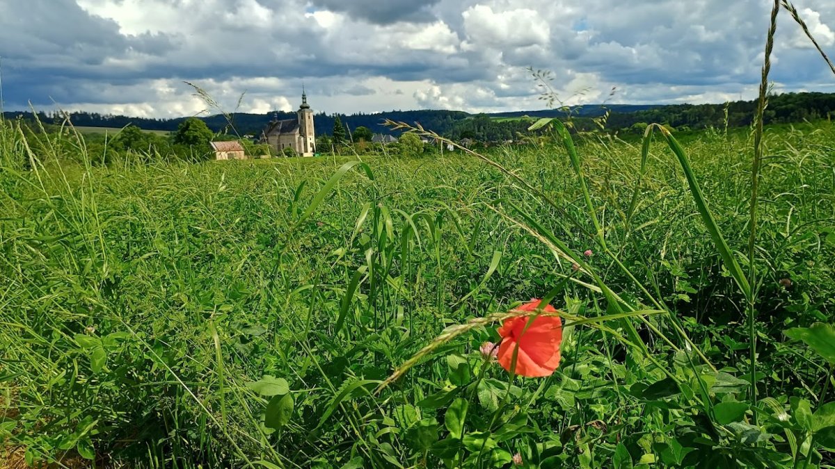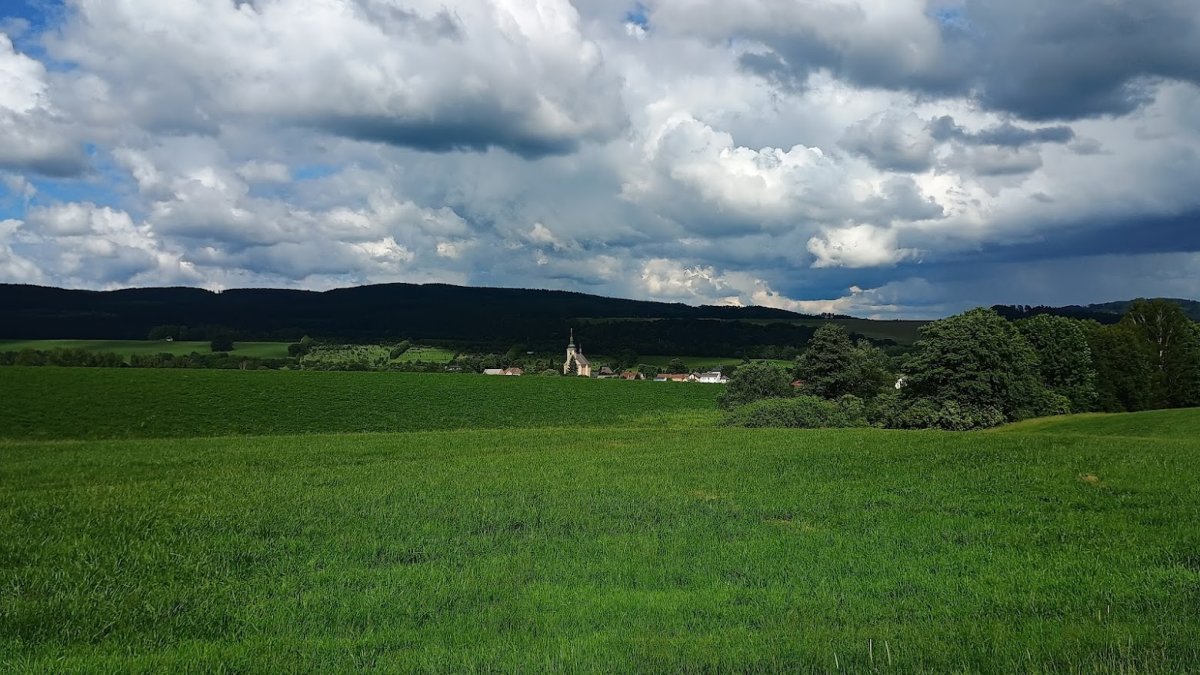 Dnes brácha pohlídal dceru, tak jsme zase s Malinou vyrazily. Tentokrát kolem Tatenic. Jezdívala jsem tam s babičkou jako dítě navštívit babičinu sestru. Bydlela ve statku na kopci. Od autobusu k němu vedla uzká cestička mezi ploty. Statek sám byl jako by se v něm zastavil čas, stará kachlová kamna, staré almary, na chodbě dřevěný koník, který musel pamatovat ještě tetinýho muže, když byl malý. Jak já tyhle výlety milovala. Přišel mi ten statek tak tajemný, ráda jsem ho prozkoumávala. Po smrti tety, nebo spíše pratety, statek chátral, až myslím spadl a dnes už tam není, jen ta cestiča od autobusu vypadá pořád stejně. Obcházela jsem ty Tatenice a vzpomínala. Mám tohle místo a údolí hodně ráda. Zatím jsem nesbrala odvahu jít se podívat na místo, kde ten statek stál, z pole ani dole ze vsi totiž vidět není. Musela bych cíleně dojít po cestě, která vedla jen tam nebo ze zadu od pole a podle mapy i tam ta cesta končí. I když možná je lepší tam nejít a představovat si, že tam pořád je. Asi bych pohled na ruinu nebo prázdné místo či nějakou moderní budovu místo něj, nesnesla. Na prostřední fotce je za kostelem Cukrová bouda, Zábřežská vrchovina.