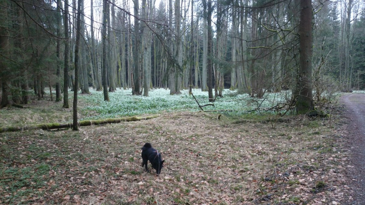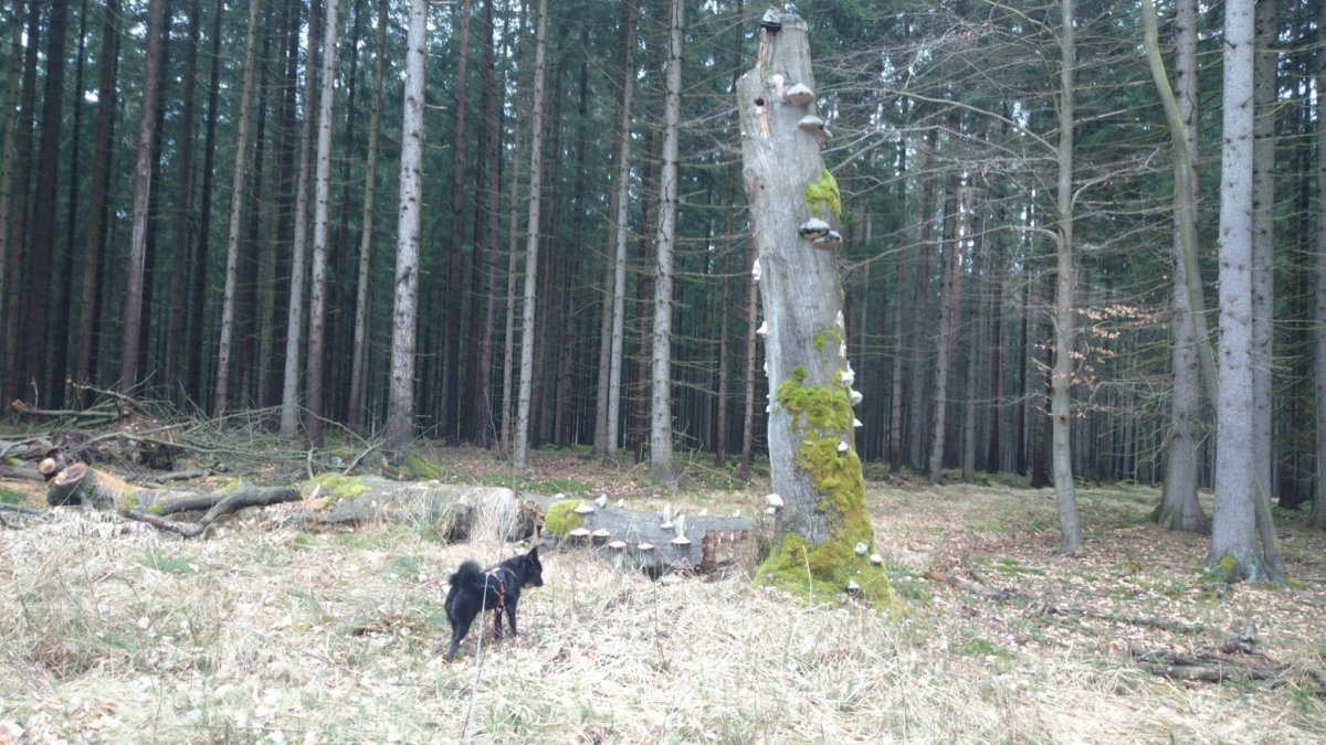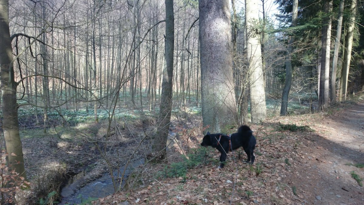 Tak dneska jsme byli taky v lese, ale dost jinde a po dnešku jsem si ještě víc jistá, že v pondělí cítila něco neobvyklého z čeho měla respekt. Prostě se chovala dost jinak, nevzpomínám si, že bych jí kdy viděla, pořád se tak koukat do lesa, já si i myslela, že nás asi někdo pronásleduje či sleduje, ale třeba dneska jsme potkali člověka v lese a to se ho lekla a hned začala vrčet, v pondělí teda ani nemukla a hlavně se i dost koukala na mě, co já na to. Prostě obvykle je její reakce buď “pusť mě, ať za tím můžu běžet” “hele bacha, jede cyklista, někdo jde” . No a nemyslím si, že bych její chování ovlivnila já, že by v pondělí byla obezřetnější. Stalo se mi loni, že mě přepadl v lese najednou hrozný strach a právě to, že Malina byla klidná a nijak nekoukala napravo nalevo mě zas uklidnilo, říkala jsem si, že kdyby tam něco bylo, ona by si všimla.