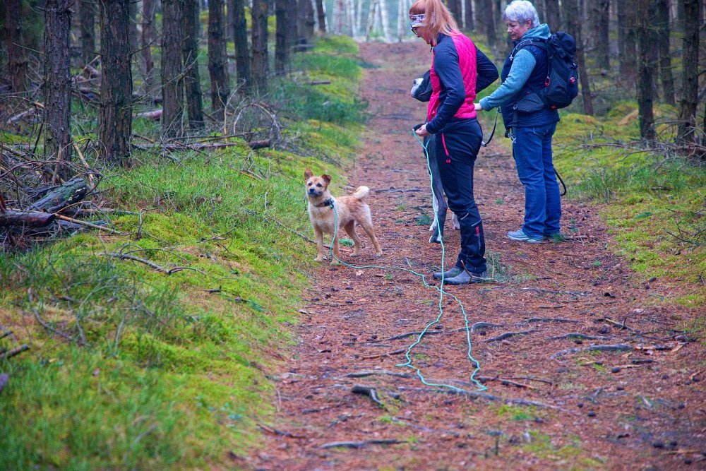 Tak dneska jsem si našla hezkou trasu cca 9 km. Tak jo, bude tam bláto, nevadí. S Malinou jsme vyrazily. Sakra není tu cesta, co tu měla bejt, nevadí, krosnem to přesto podmáchaný pole. Aha ten potůček, kde je ta cesta, je spíš bažina a je přesto mokrá kláda, nevadí, najdeme místo, kde ten potok přeskočíme. Jdeme dál, aha, tak tady ta cesta vede přes loukou, kterou má někdo ohrazenou elektrickým ohradníkem. Nevadí, objedeme to tady tím lesem, mlázím, přeskočíme potok, projdeme bažinou a hurá, já to říkala, že to půjde obejít 😂. No zbytek cesty pak už byl v pohodě, když opomenu bláto. To jsem viděla, že teda Malina fakt není ráda, že si umaže tlapky a snažila se chodit trávou dámička.