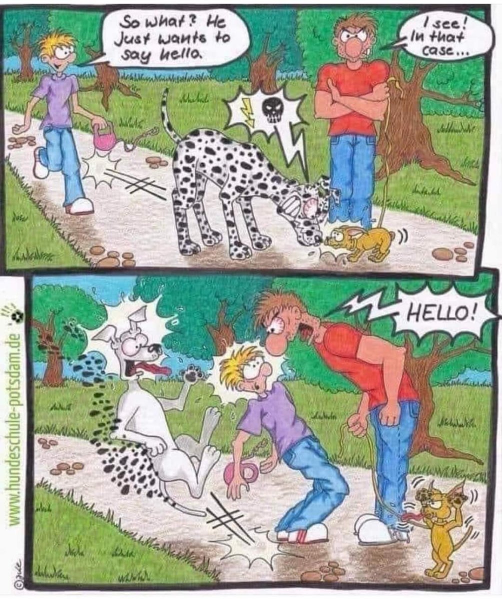 “Paní, máte doma granule? A mohl bych je vidět?” (a pak se v nich vyválí jak v mršině, místo aby je sežral.)