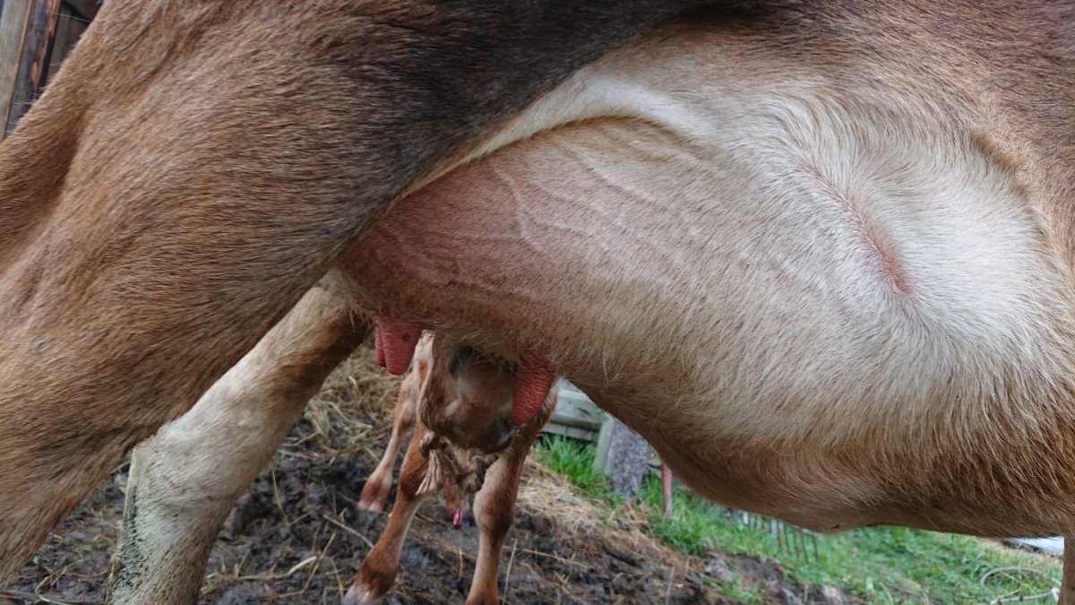 Tak to zatím opravdu nezafungovalo, ale navíc jsem zkusila i telátko pustit pod ní, bylo vidět, že se oba snaží, Cyril střídal všechny 4 cecky a mezitím jsem zkoušela ty ostatní. Bylo vidět že se i kráva snaží, trošičku to kapalo, nadojili jsme spolu s cyrilem tak 100ml, který mi následně vypil z kyblicku hned pod krávou 😕 Takže chudák ani on se moc nenapije. Volali jsme znovu vetovi a ten řekl, že možná to mliko prostě pustit ani nedokáže ☹️. Je to celý divný, ještě minulý týden jsme ji normálně dojili.