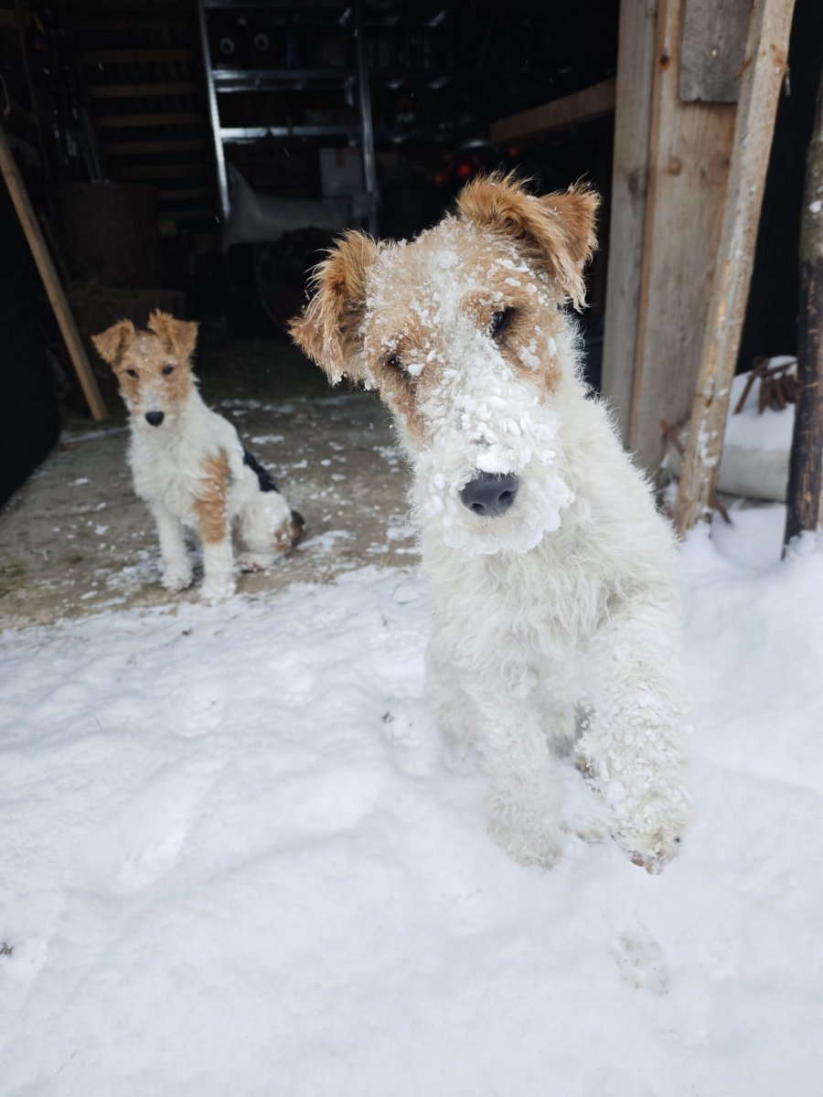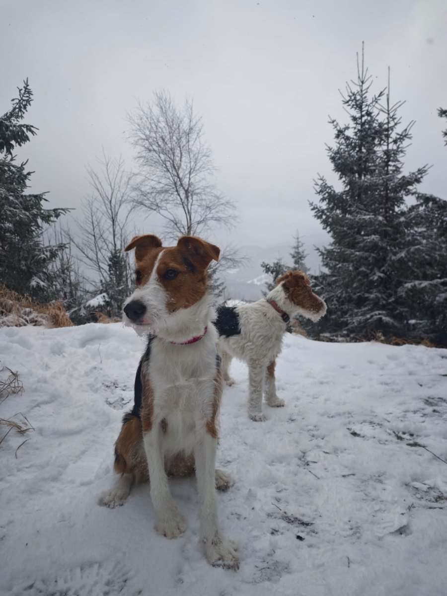 Já jsem vlka takhle naživo přírodě viděla poprvé, a po pravdě jsem se trochu bála - o psy, je to ani ne týden, co nás před nimi varovali polovníci, že se tu potulují a ať si dávám pozor i na zvířata (máme kozy, krávy, husy…) i na psy. Ani jsem si nebyla úplně jistá, jak se foxteriéři zachovají - přijdou nepřijdou…