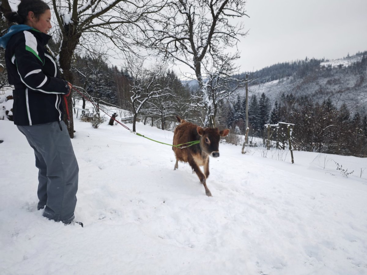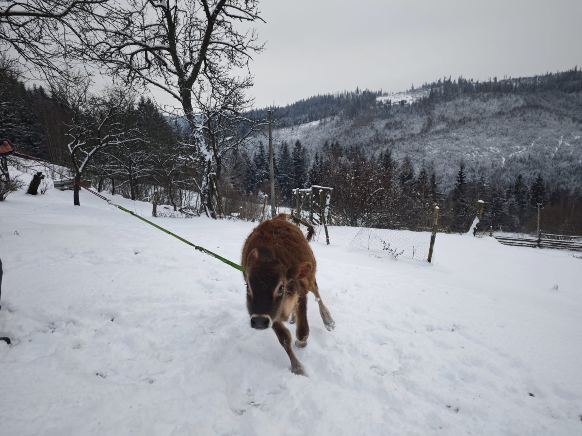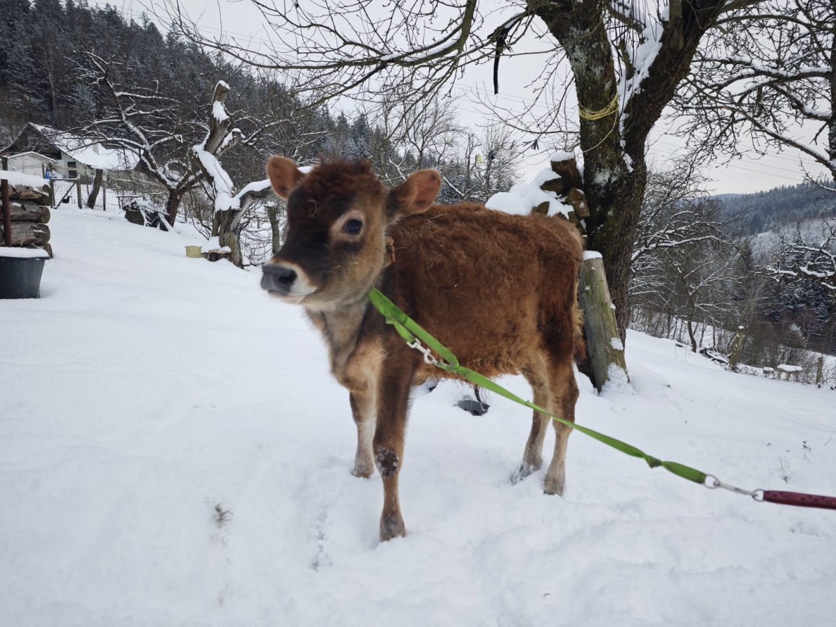 Jinak nám se dneska v noci narodilo mrňavý telátko, vybralo si nejchladnější noc této zimy, ale vypadá šťastně…