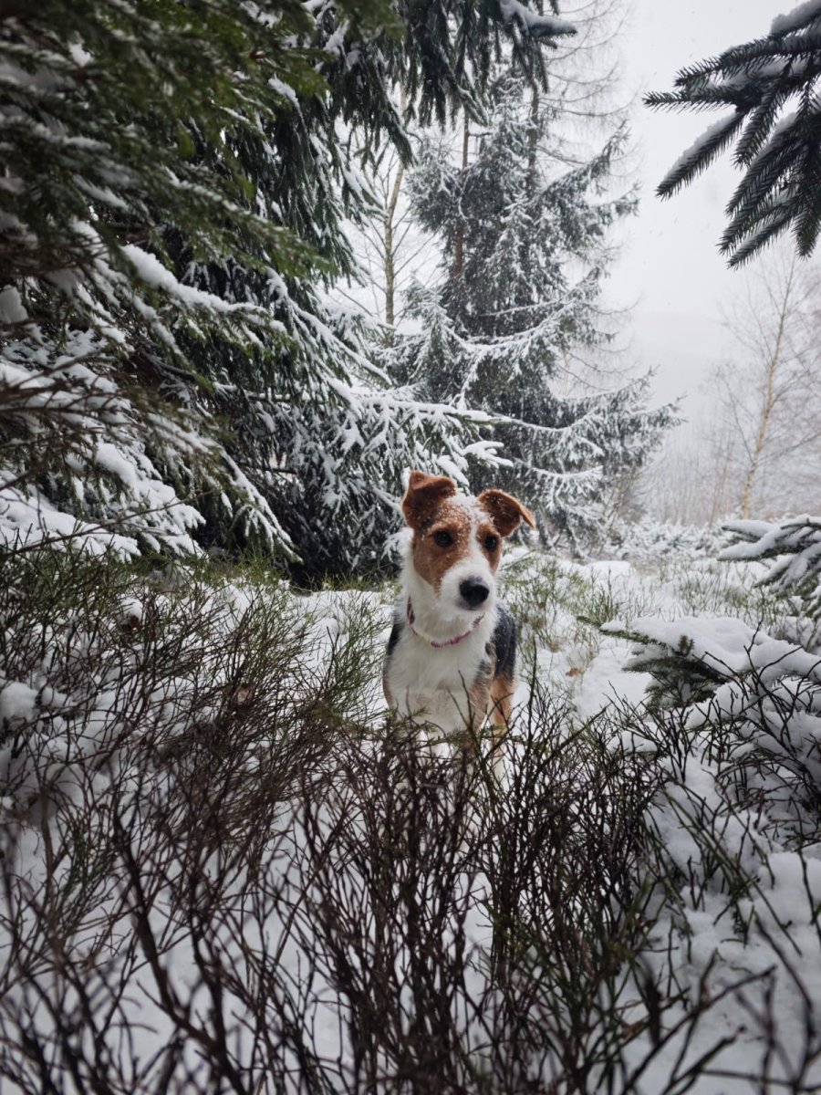 Na procházce místama Dessynka vůbec nevyčuhovala ze sněhu a musela jsem jí prošlapávat tunýlky…