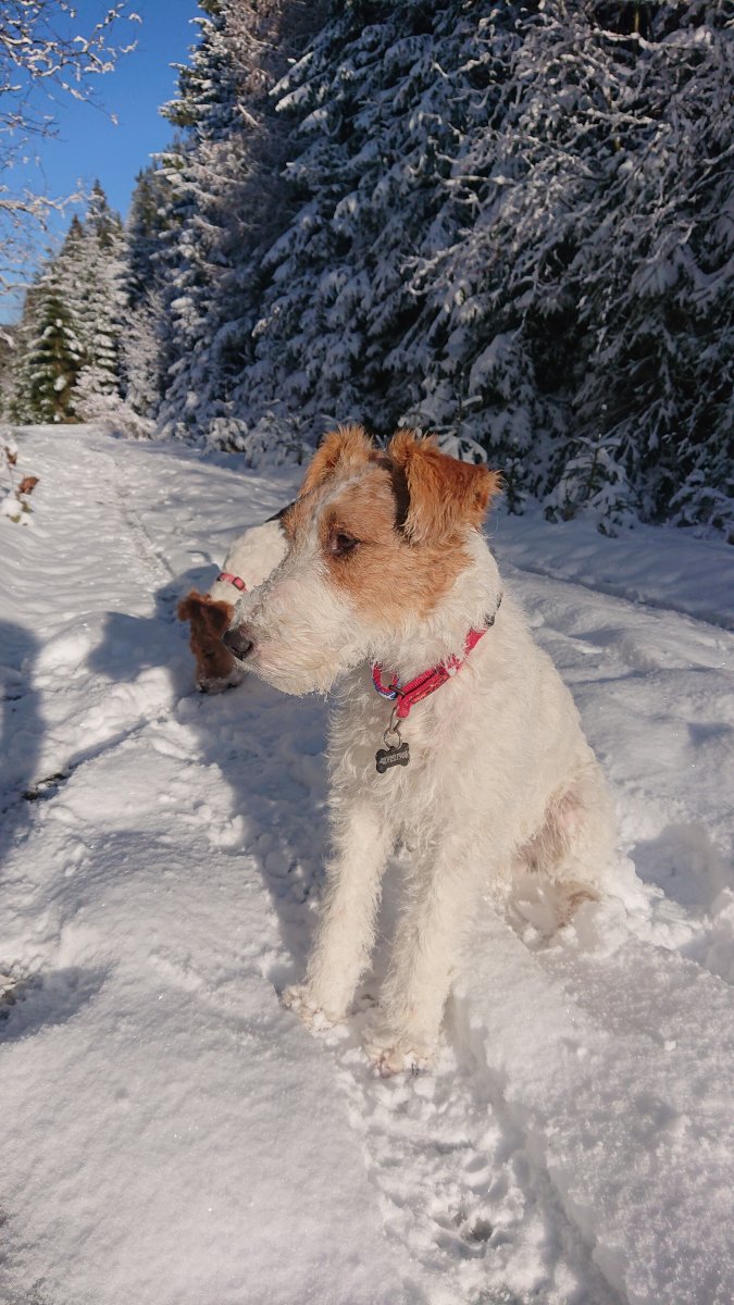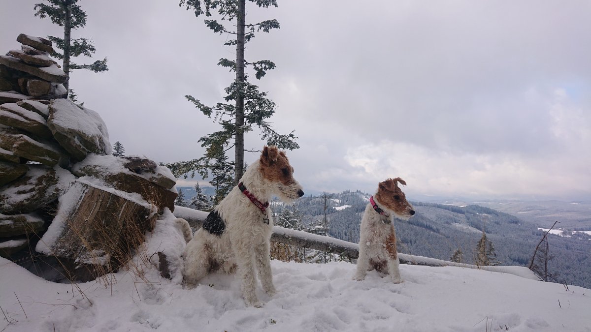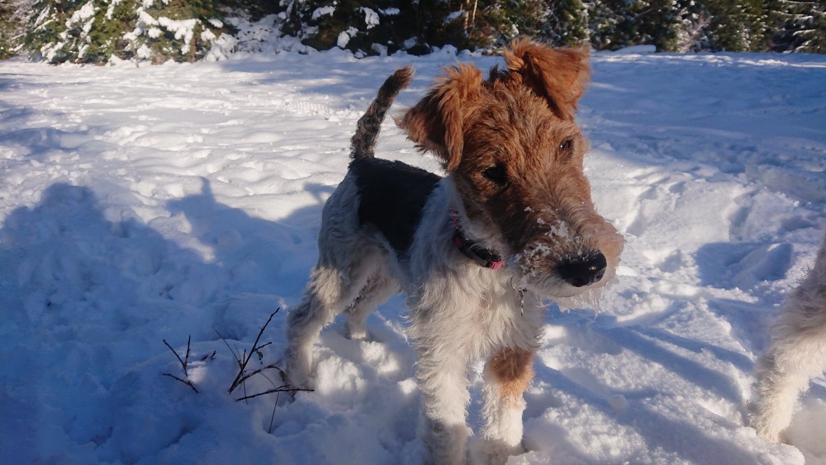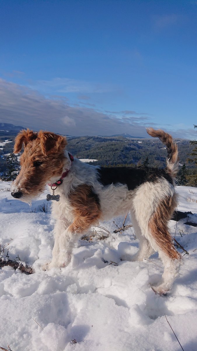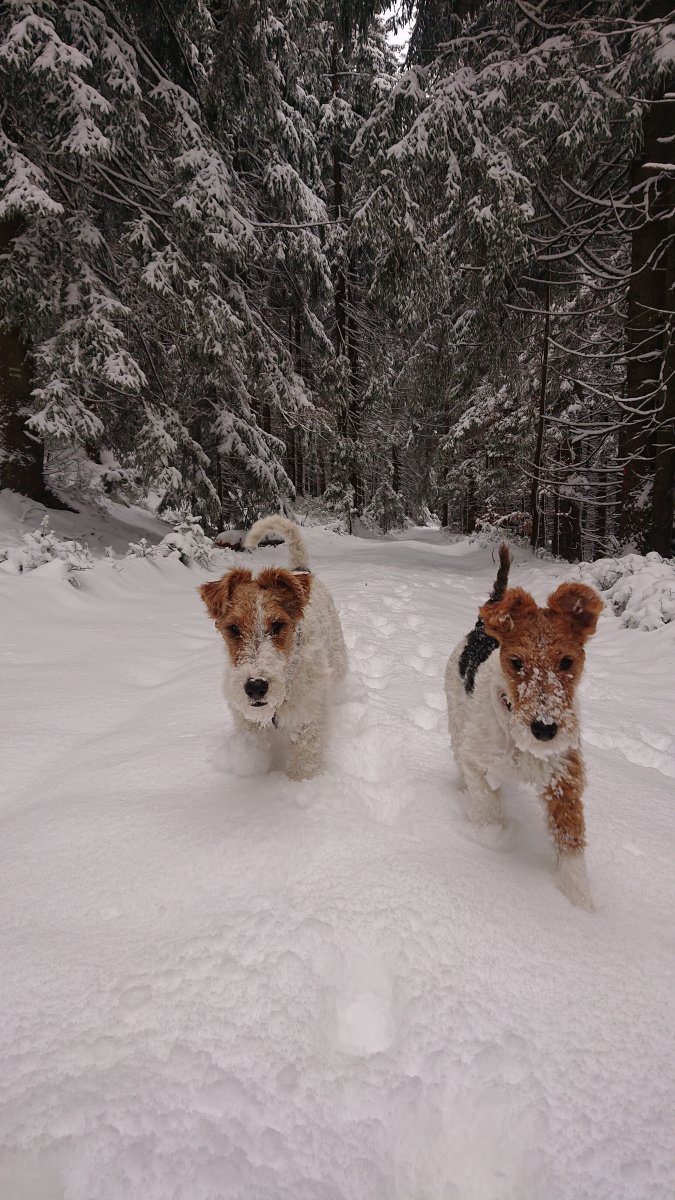 Foxteroři byli dneska venku se sousedovic skoro-čivavou. Takže klasika, foxteroři lítali po lese a skoročivava šla se mnou, abych se sama na cestě nebála.
