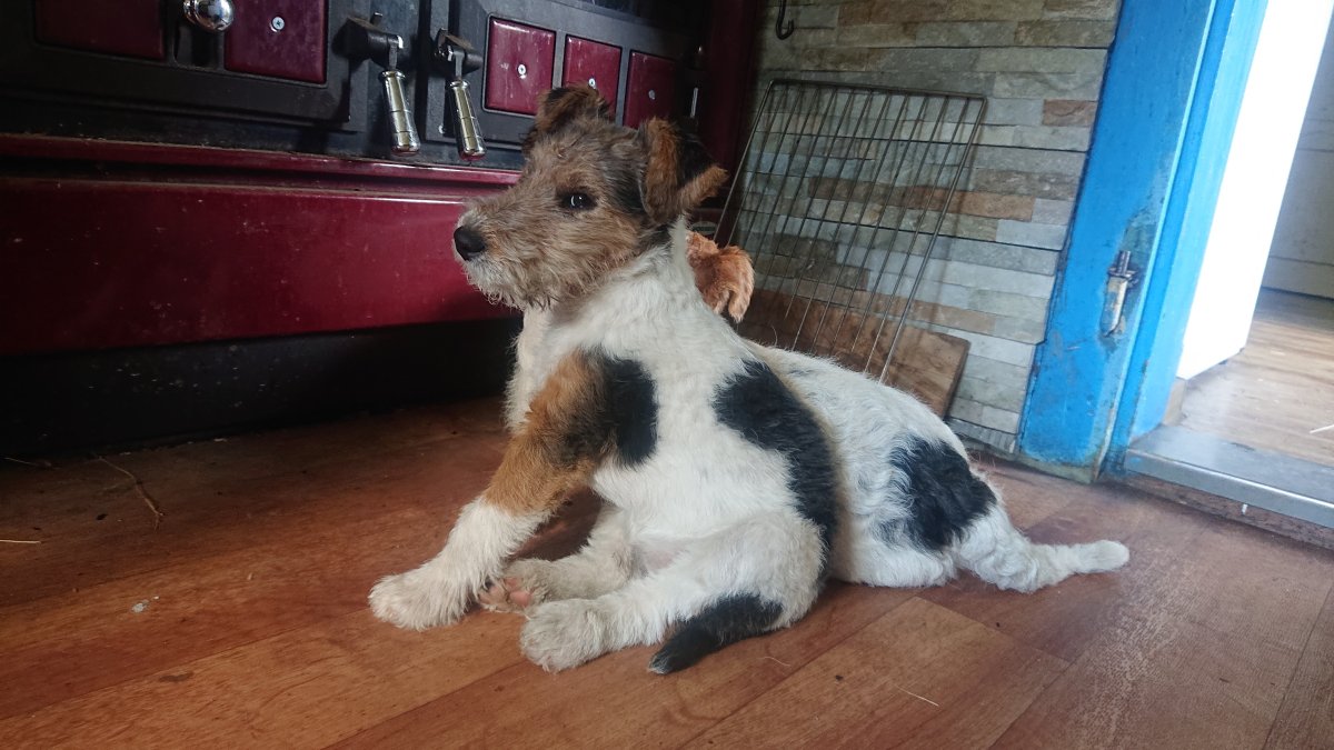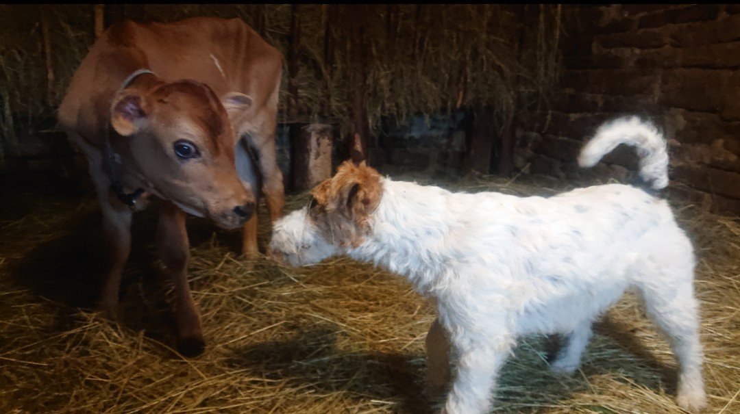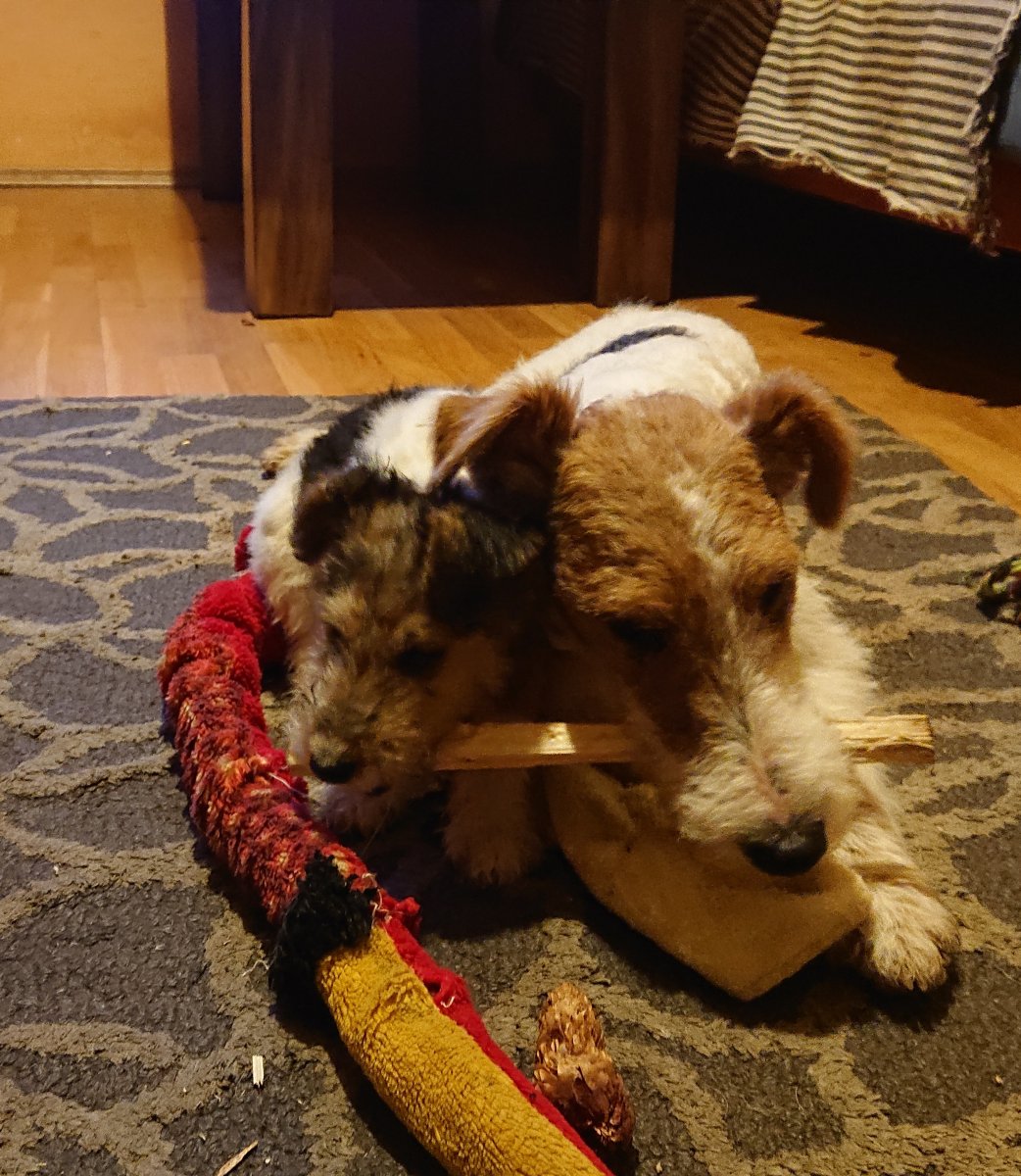U nás už se štěňák zabydlel. Velkej foxterier si ho vzal na starost a během pár dní se stali úplně nerozluční
