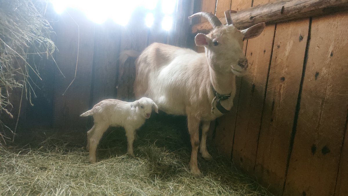 Dneska byly venku výjimečně jen chvíli ráno, pak se šlo domů rodit a Sahara porodila Laciho a Tuciho (dva kozlíky).