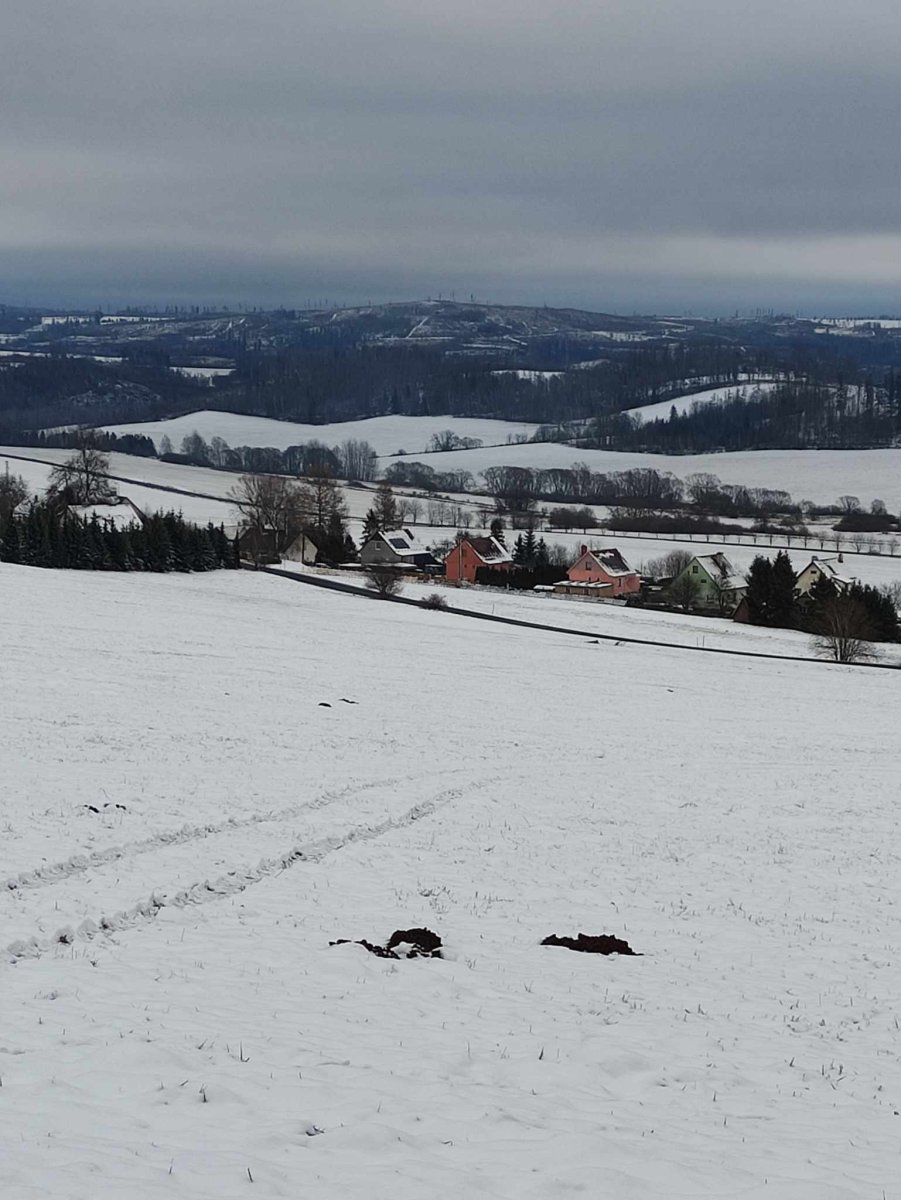 Bylo to trošku vejš, cca o 120 metrů, tak tam bylo sněhu víc než tady. A dnes ráno mráz -9, během dne to na sluníčku trochu stouplo. U vás taje?