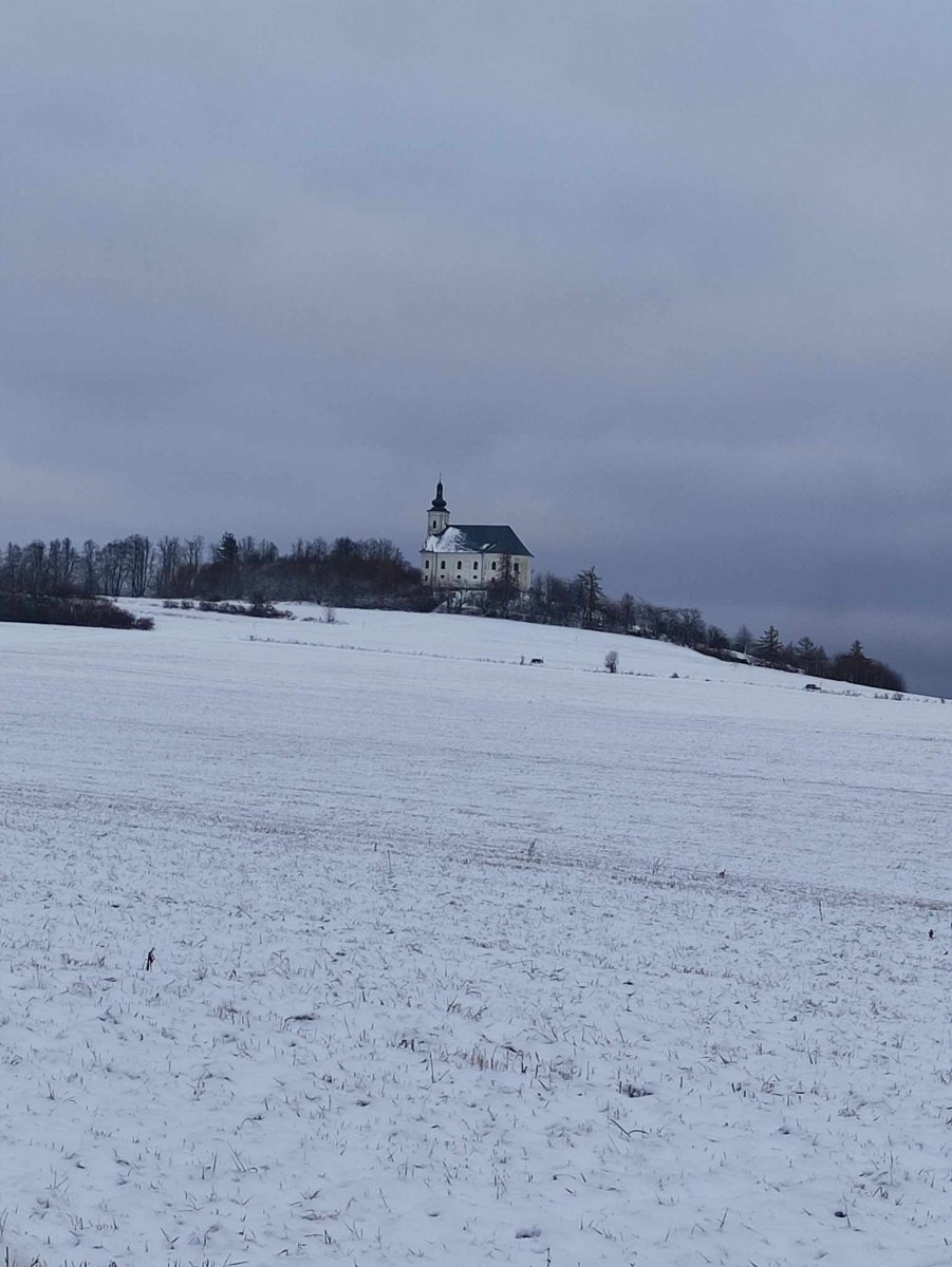 ❄️Dnešní sváteční procházka s Dráčkem kolem komína, resp. kolem kostela. Holky pojedou zítra.