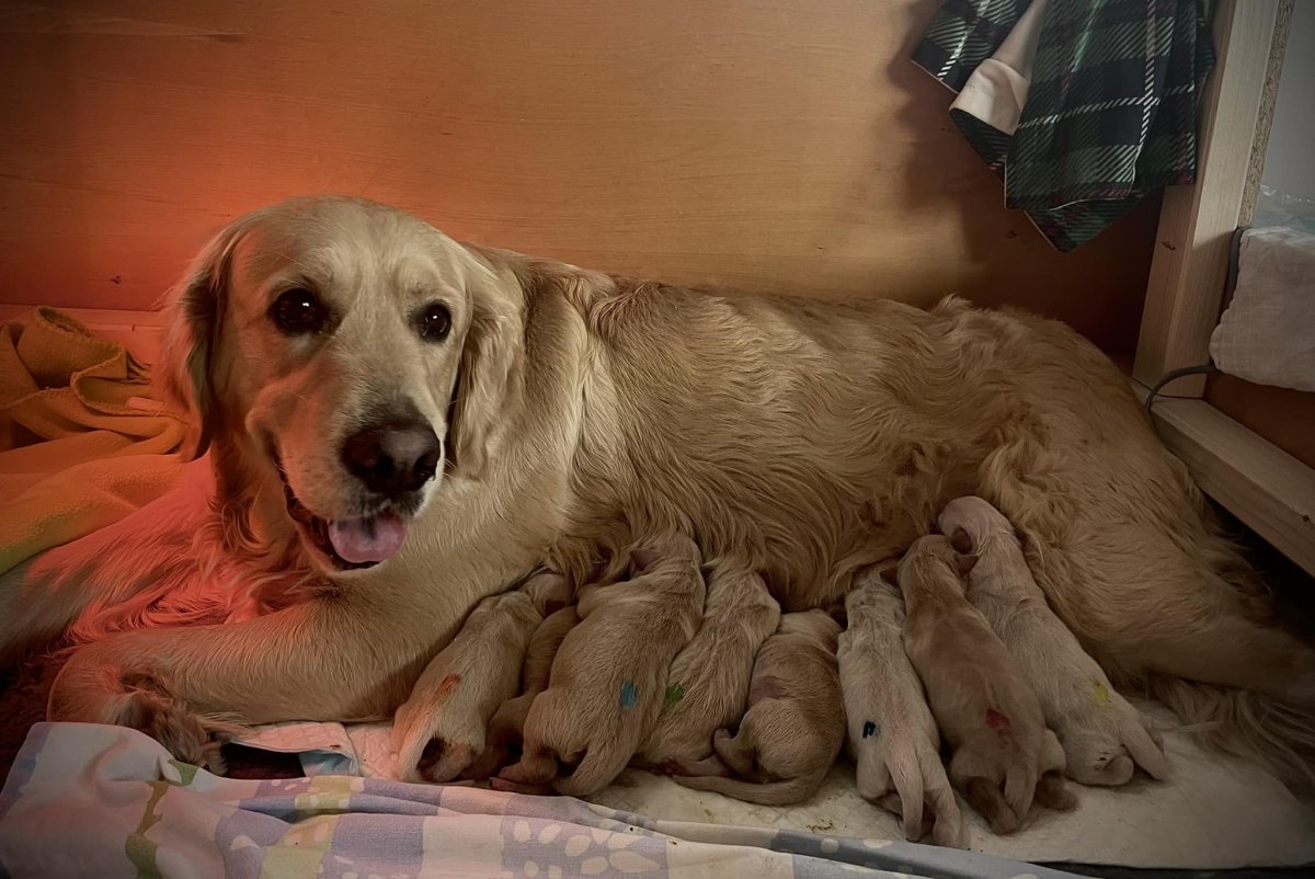 Včera jsem byla za porodní bábu, narodilo se 8 štěňátek, 4 holky a 4 kluci. 😍