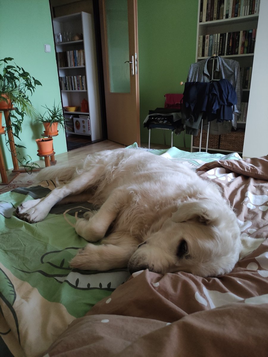 Dnes je to zatím v pohodě, pil normálně, ráno po vyvenčení si za mnou přišel lehnout do postele, odpoledne na procházce veselý jako vždy. Žere taky normálně, s chutí jako vždycky.